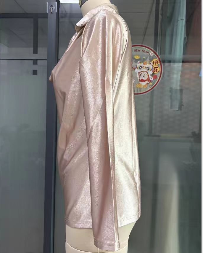 2025 유럽과 미국의 크로스보더 스윙 칼라 셔츠 여성 가을, 겨울 긴팔 탑, 심플하고 슬림하며 다용도 통근