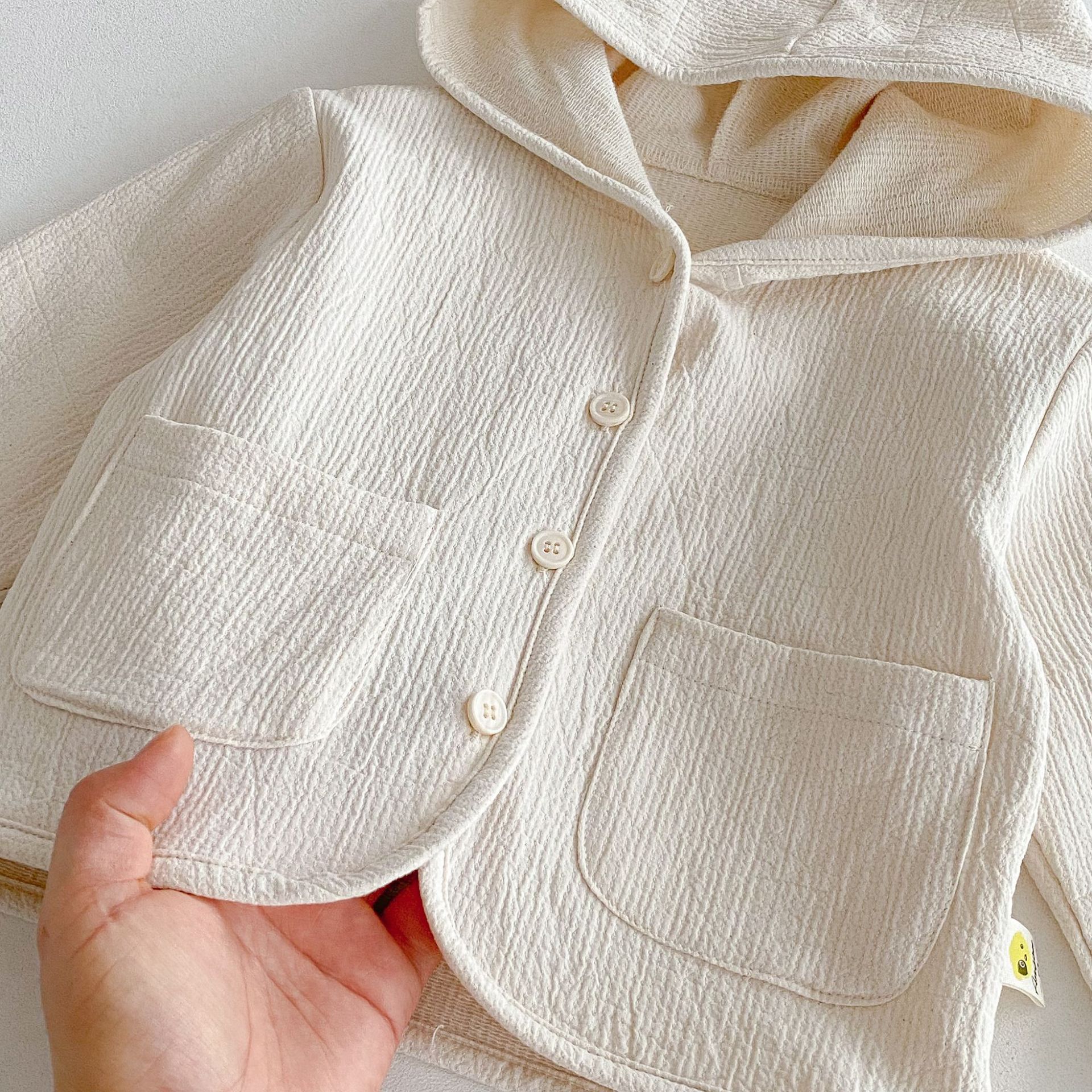 Ins 가을 한국 스타일 베이비 후드 자켓 남성과 여성 베이비 유니섹스 심플 서양식 다용도 외출 카디건 탑