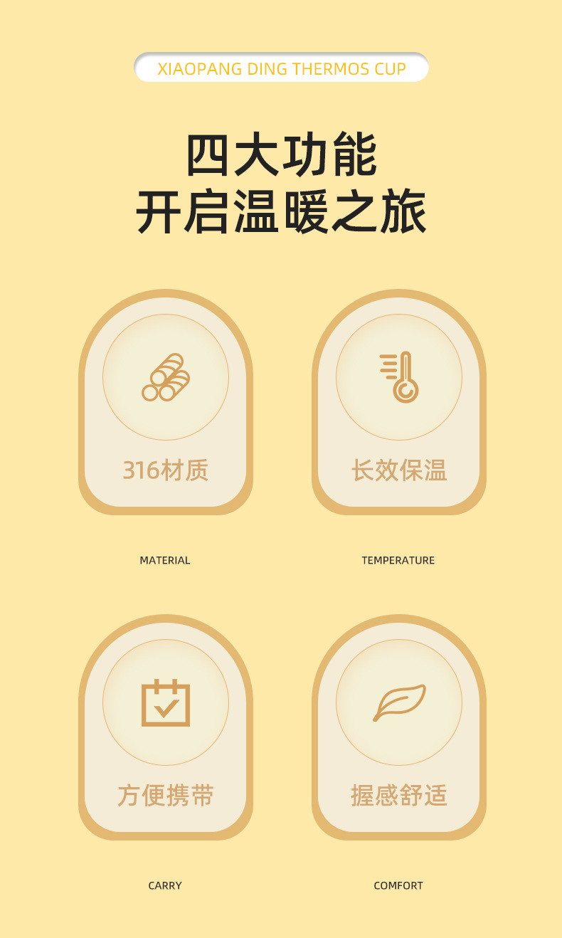 316不锈钢小胖丁保温杯高颜值学生可爱水杯户外便携式迷你口袋杯