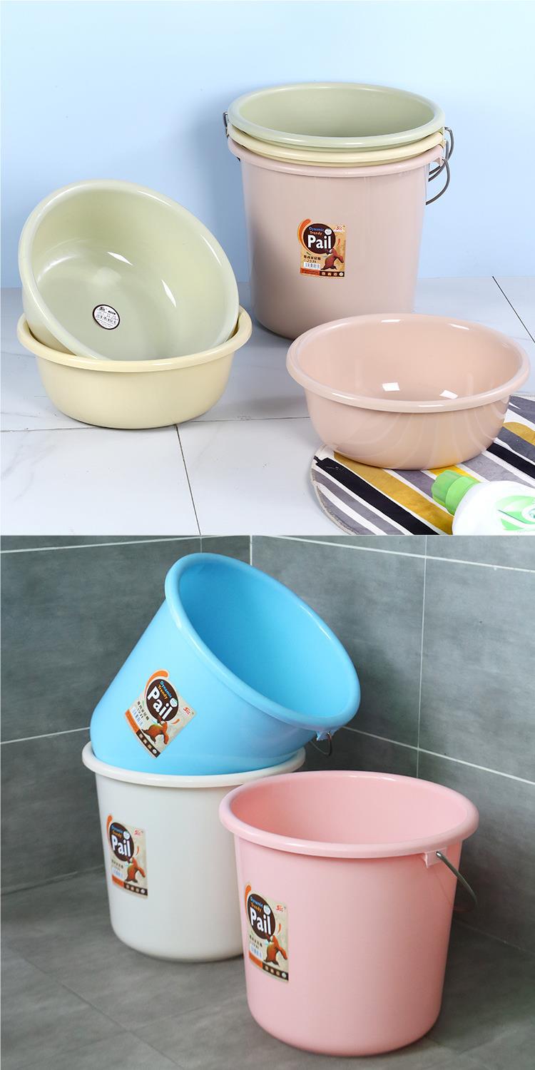 가정용 플라스틱 양동이 두꺼운 휴대용 물통 학생 기숙사 목욕 양동이 대형, 중형 및 소형 원형 물 저장 양동이 매일 사용스토어 가기