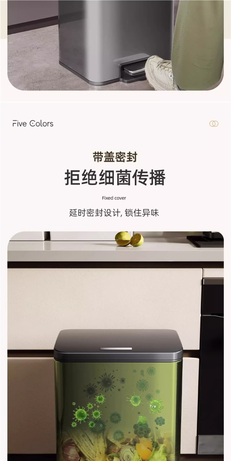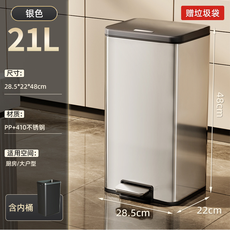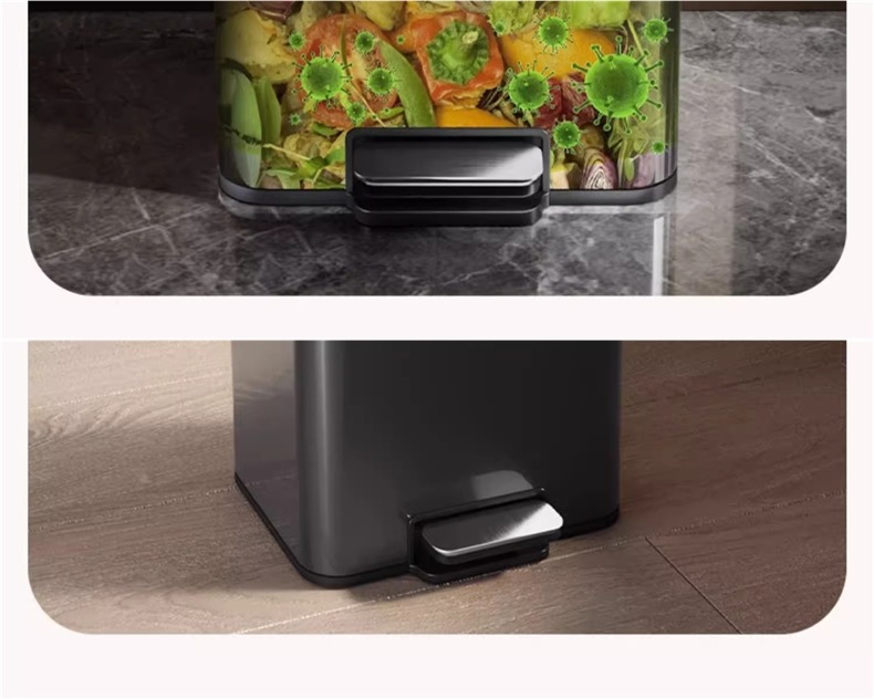 주방 쓰레기통 가정용 스테인레스 스틸 거실 발로 작동하는 욕실 화장실 발로 작동하는 뚜껑 대형 대용량