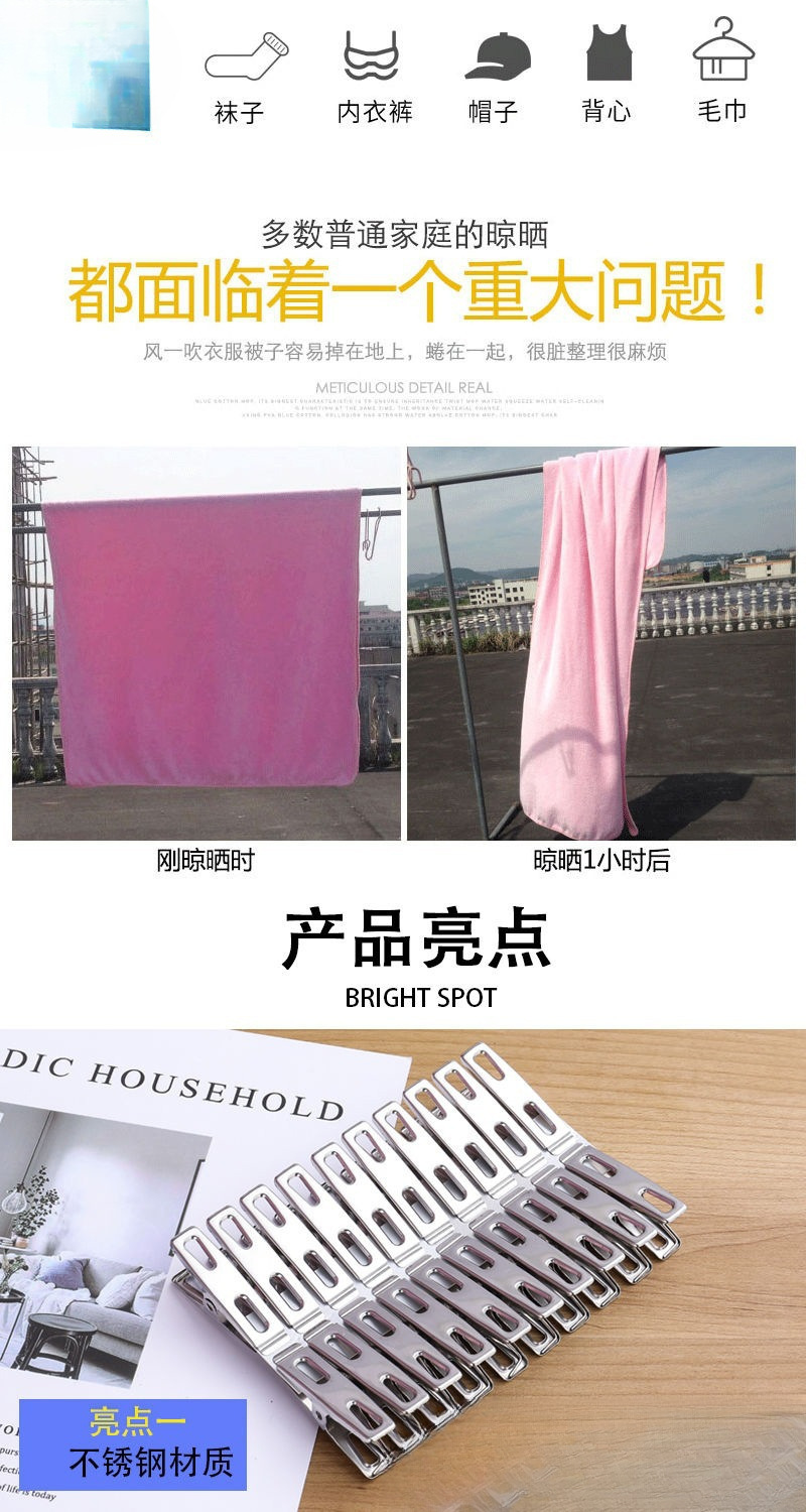 스테인레스 스틸 클립 20개, 옷 건조용 플랫 입 클립, 가정용 철 클립, 방풍 클립, 건조 클립, 양말 클립스토어 가기