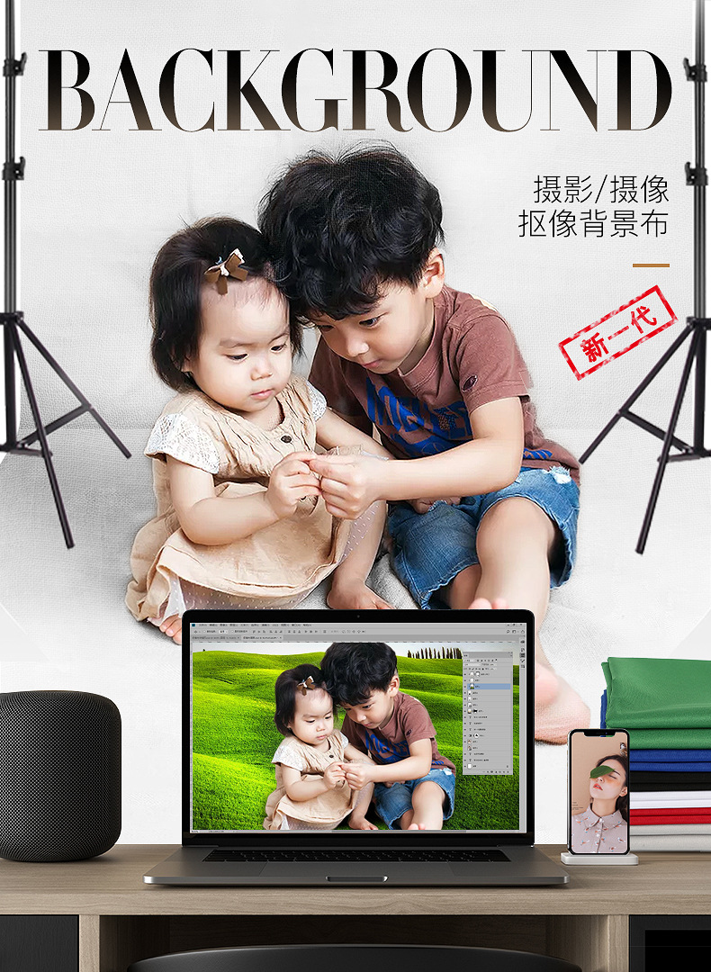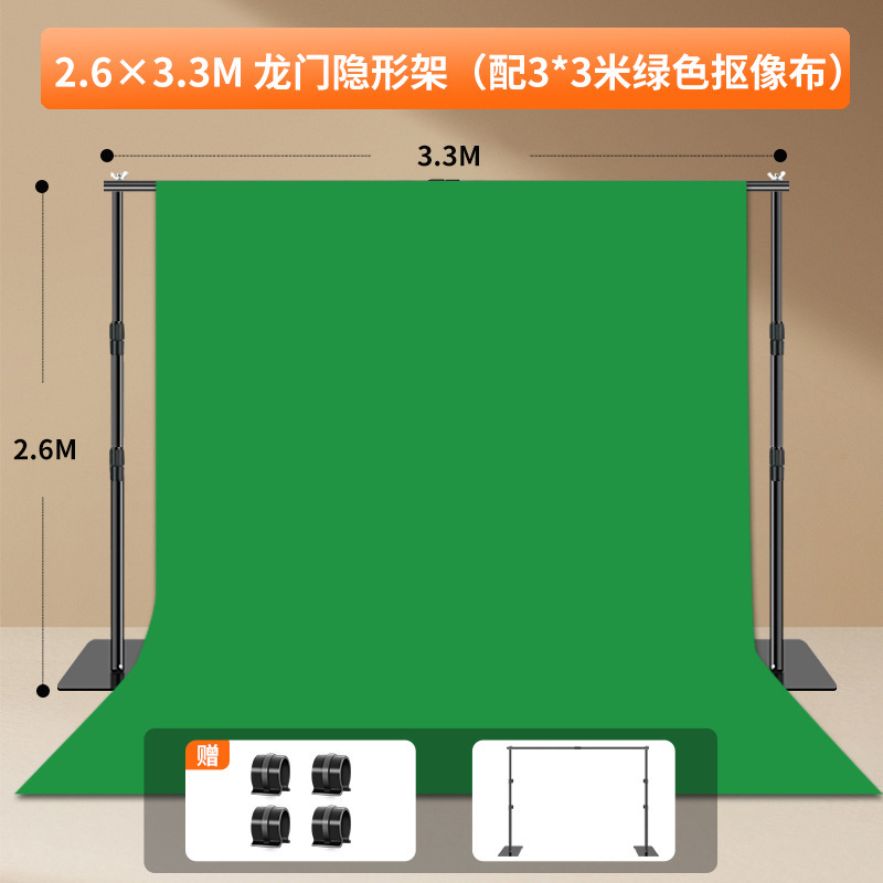 • [보이지 않는 패키지] 2.6* 3.3m 텔레스코픽 배경 스탠드 + 3.2* 4m 영화 및 TV 녹색 화면-