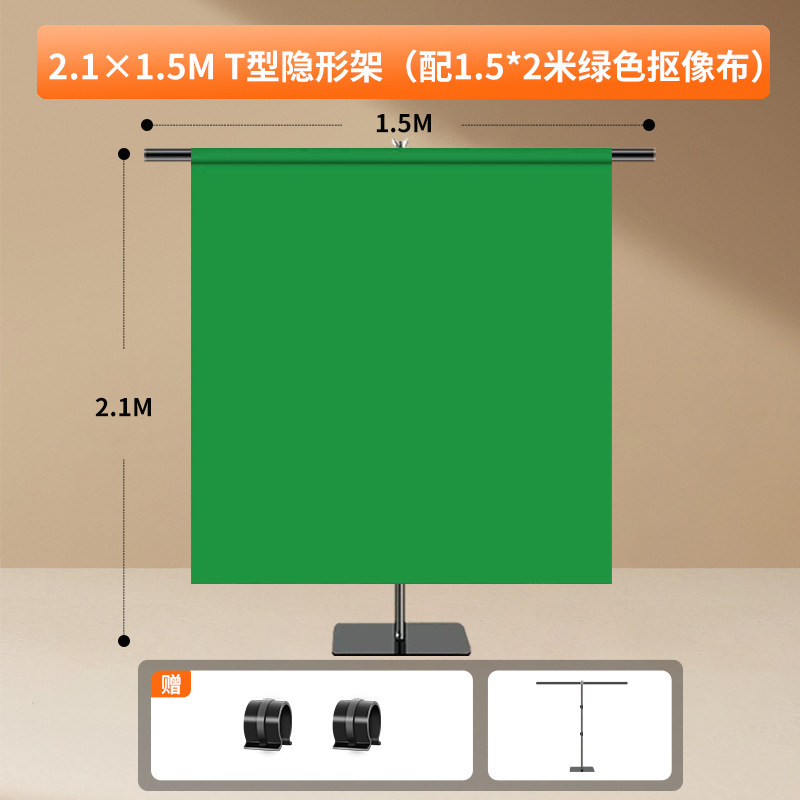 • [보이지 않는 세트] 2.1* 1.5m 텔레스코픽 스탠드 + 2* 1.5m 짠 녹색 천-1x1m