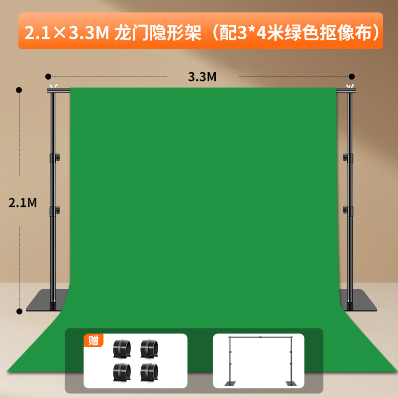 • [보이지 않는 패키지] 2.1* 3.3m 텔레스코픽 배경 스탠드 + 3.2* 2m 영화 및 TV 녹색 화면-