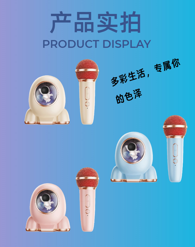 우주 비행사 노래방 스피커 마이크 통합 미니 홈 KTV 오디오 노래 기계 홈 야외 어린이 노래방스토어 가기