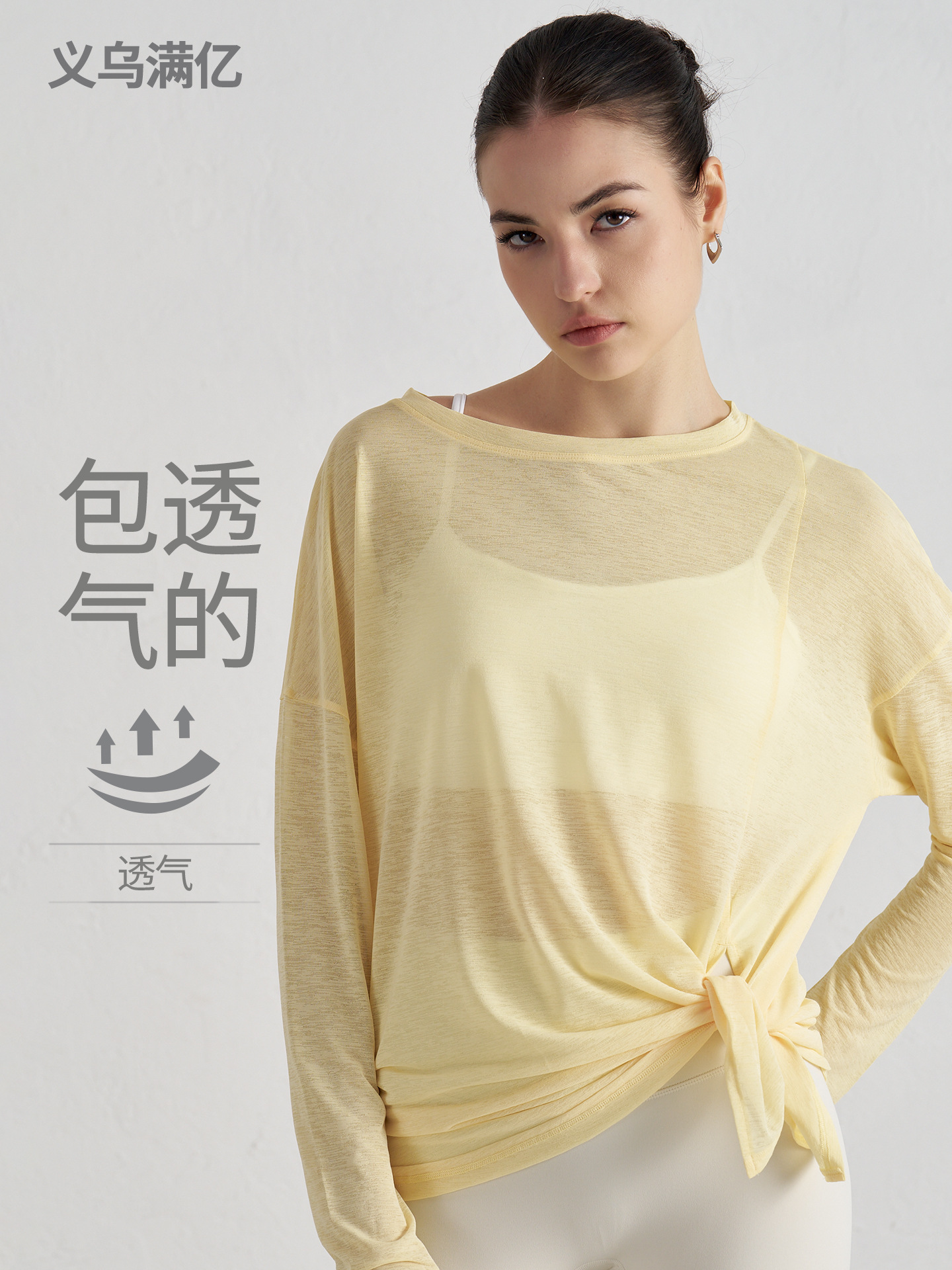 여성용 슬릿이 있는 통기성 여름 요가 커버업, 슬리밍 스포츠 피트니스 탑, 루즈하고 가벼운 요가복, 긴 소매스토어 가기