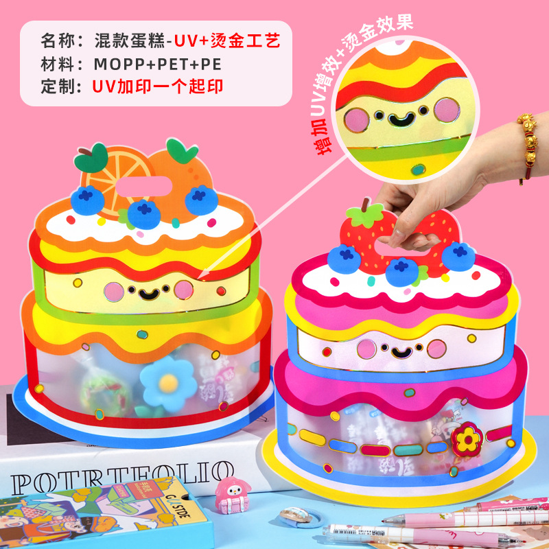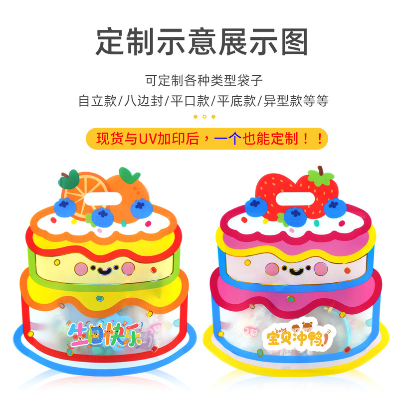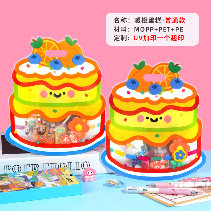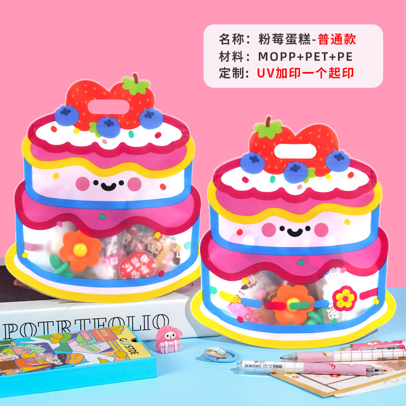 공장 직접 판매 생일 케이크 선물 가방 스낵 사탕 포장 가방 투명 유치원 어린이 휴대용 선물 가방