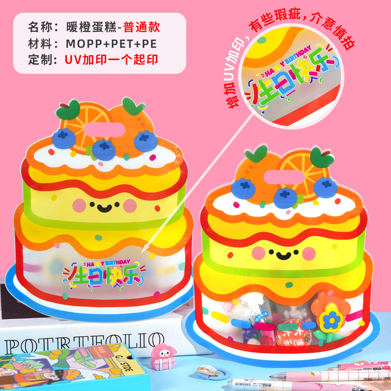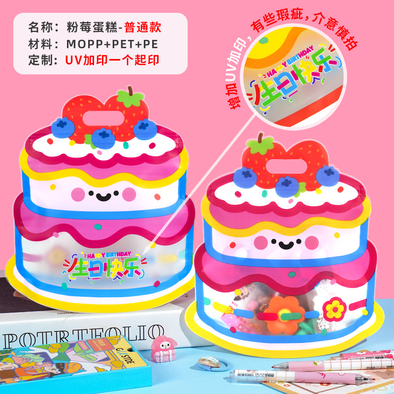 공장 직접 판매 생일 케이크 선물 가방 스낵 사탕 포장 가방 투명 유치원 어린이 휴대용 선물 가방스토어 가기