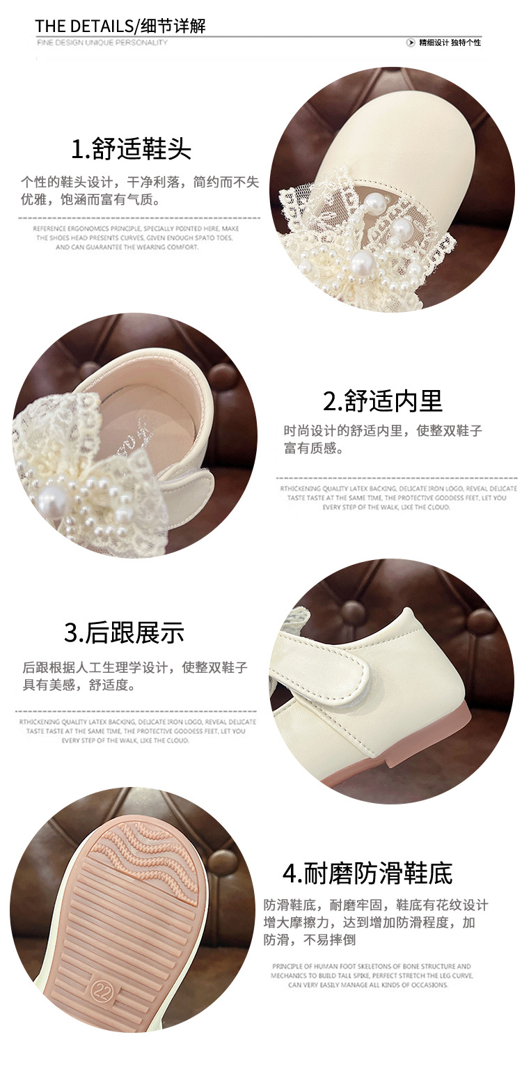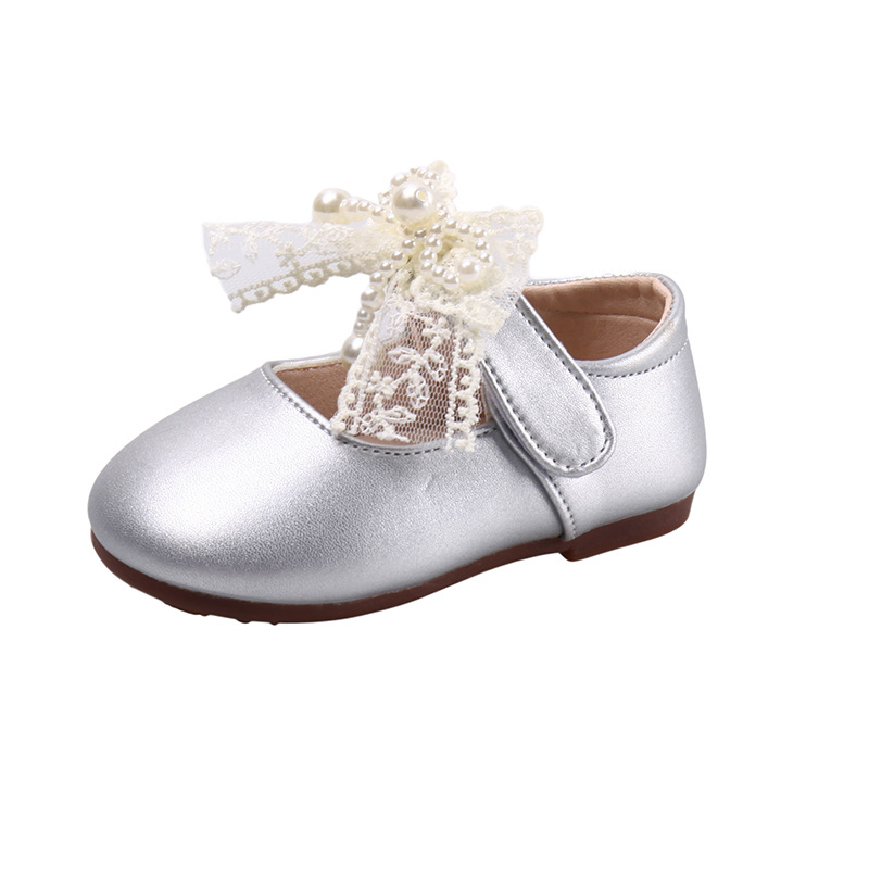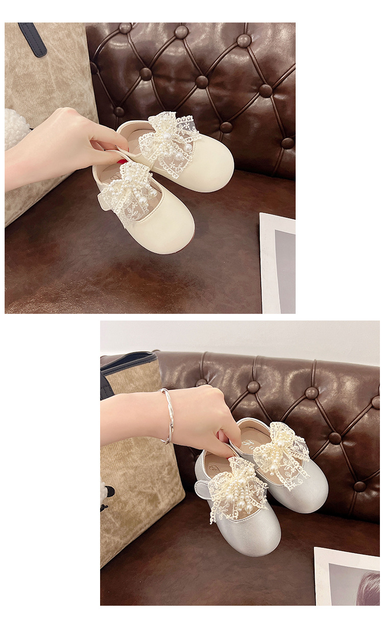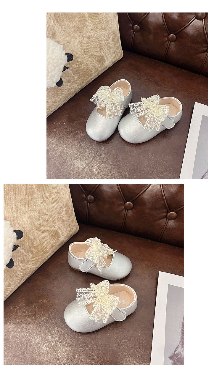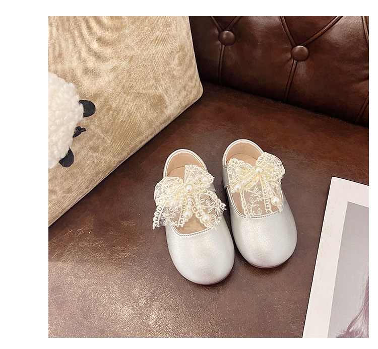 2025 새로운 가을 소녀 가죽 신발 한국 스타일 어린이 활 레이스 진주 레이스 소녀 공주 신발스토어 가기