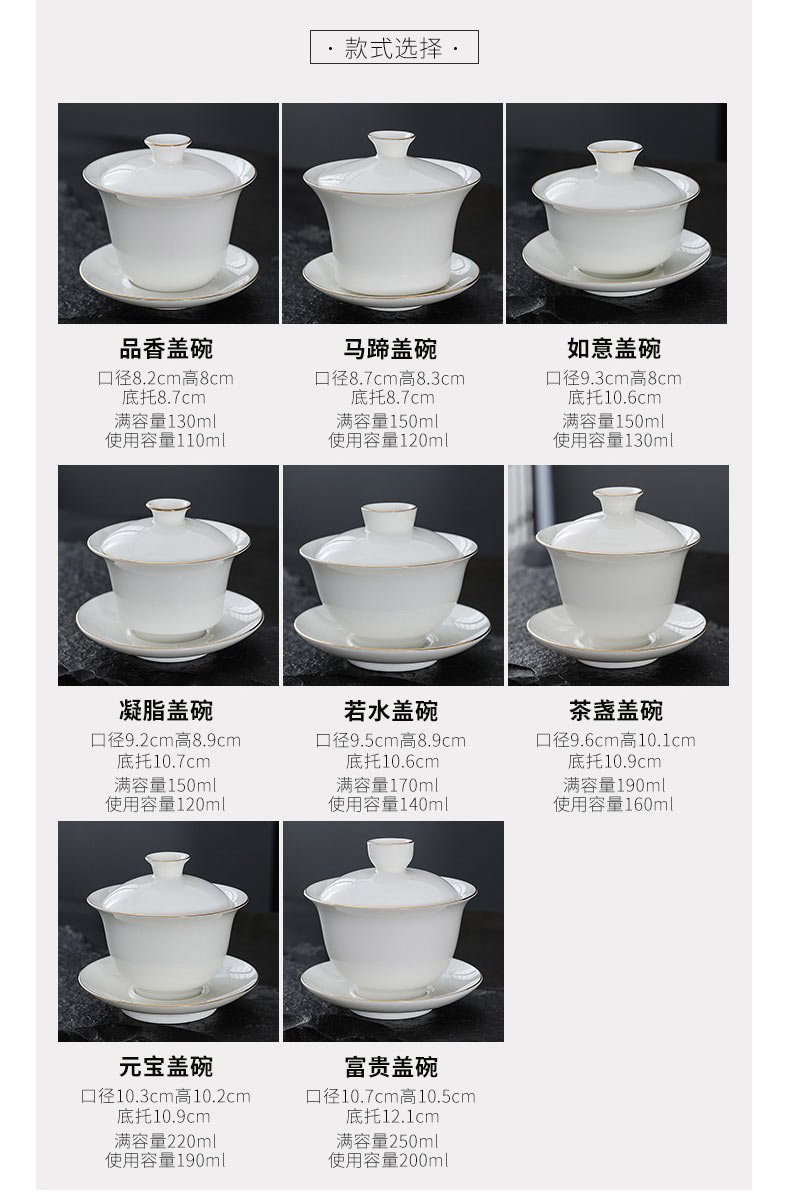 양지옥 금도금 찻잔, 데화 백자 찻잔, 대용량 뚜껑, 단일 쿵푸 차 세트, 삼재 뚜껑스토어 가기