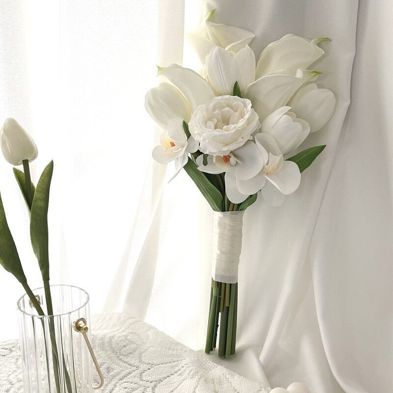 手捧花韩式新娘韩系婚纱照拍摄莲结婚婚礼白色手拿花一件批发跨境