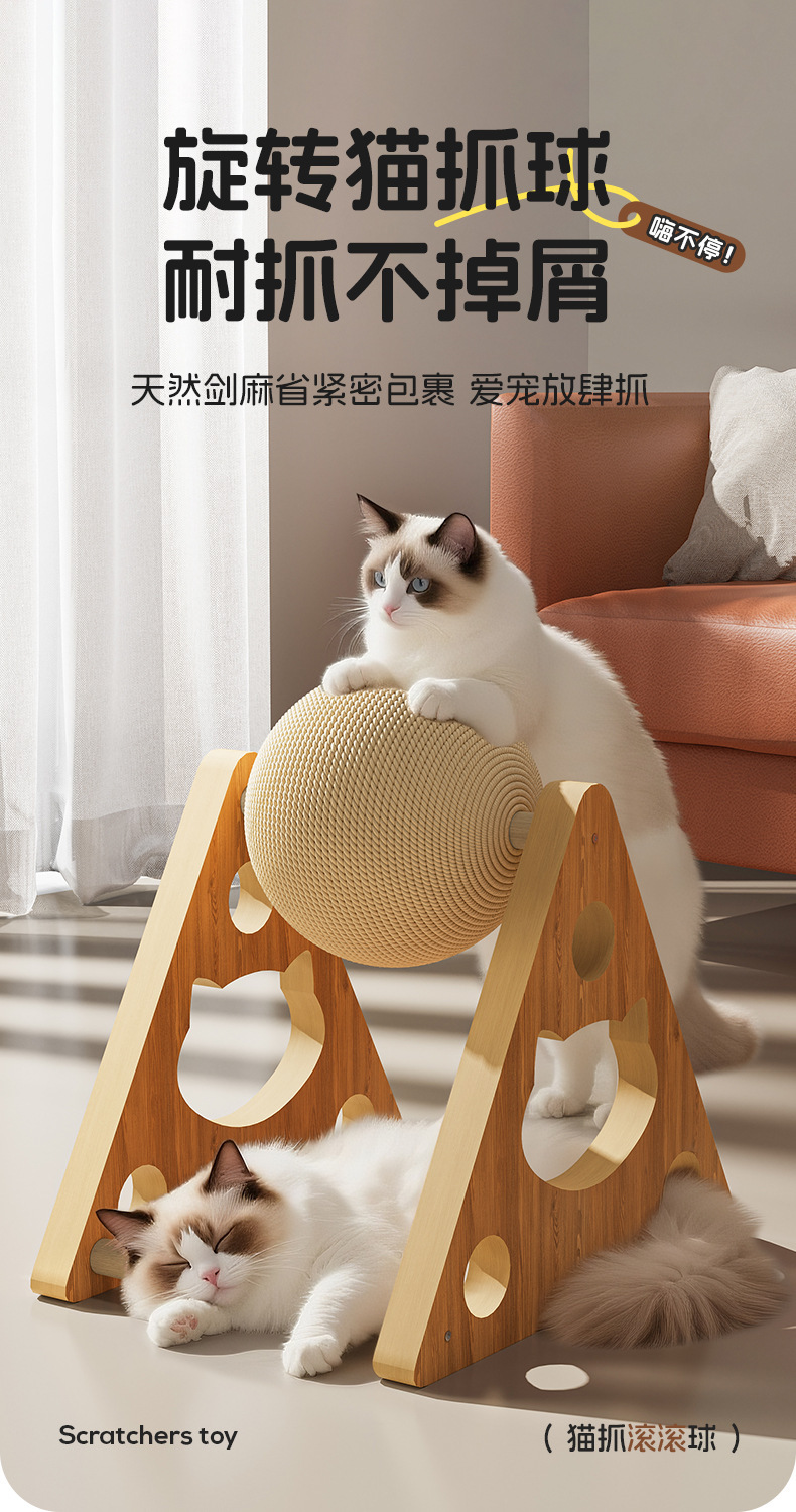고양이 발톱 연삭 공, 물림 방지, 내구성, 부스러기 없음, 지루함 해소, 고양이 클라이밍 프레임, 스크래치 보드, 수직 원목 고양이 장난감 도매스토어 가기