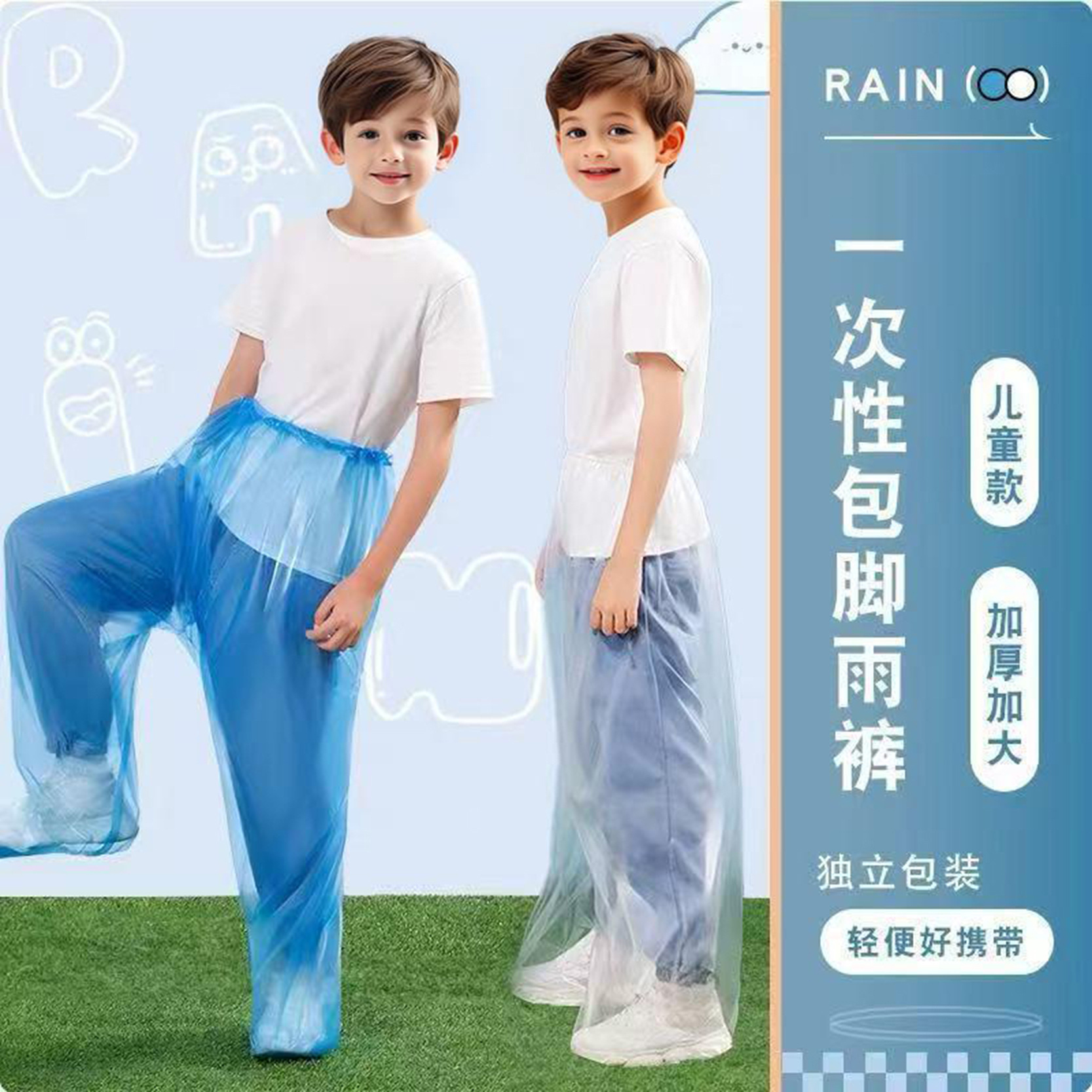 발을 덮는 일회용 어린이 레인 팬츠, 뒷면이 길고 두꺼워진 야외 래프팅 휴대용 레인 팬츠스토어 가기