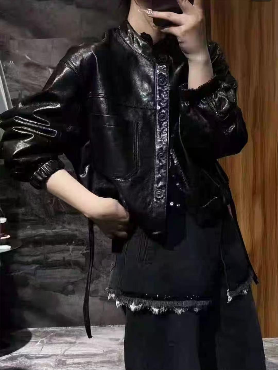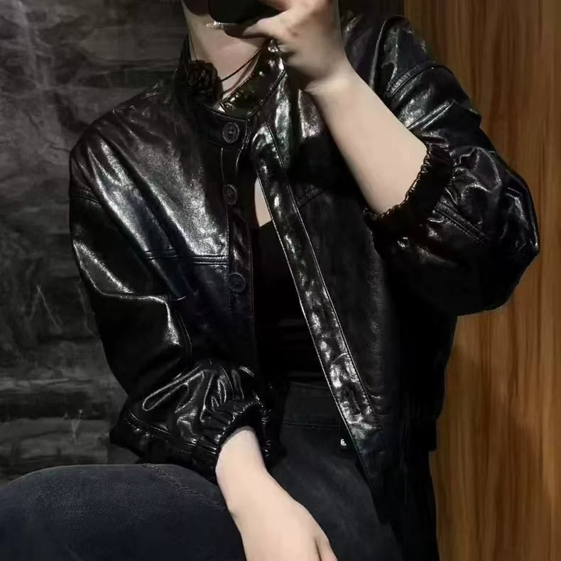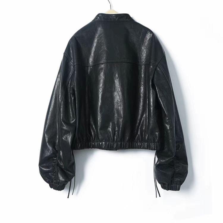 수입 햅번 양가죽 오일 왁스 가죽 정품 가죽 코트 여성 봄, 가을 스탠드 업 칼라 셔츠 재킷 짧은 코트스토어 가기