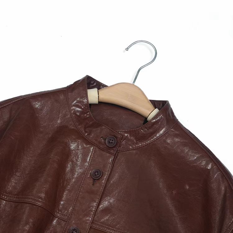 수입 햅번 양가죽 오일 왁스 가죽 정품 가죽 코트 여성 봄, 가을 스탠드 업 칼라 셔츠 재킷 짧은 코트