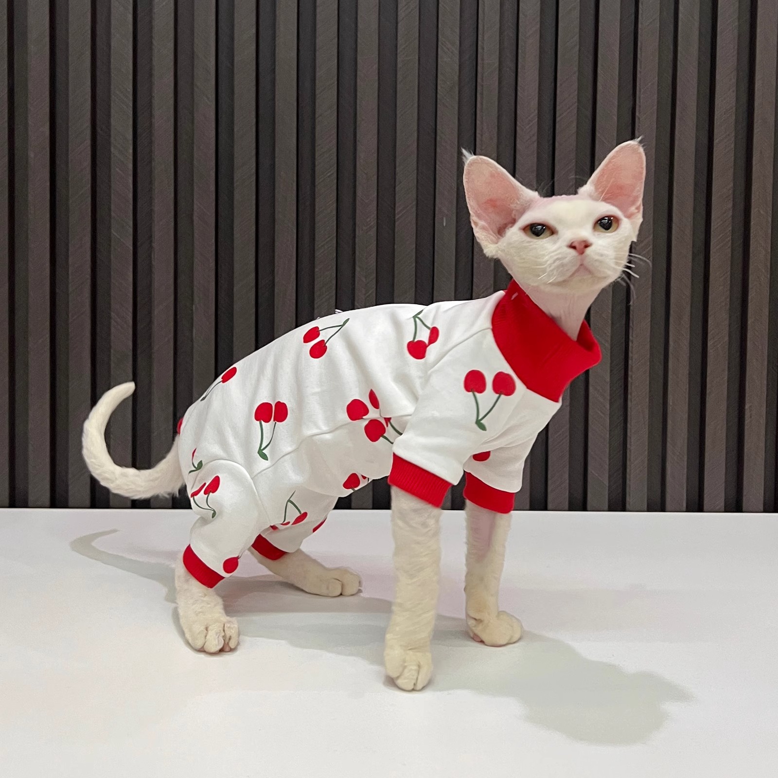 얇은 일체형 4발 옷, 데본캣 옷, 여름 털이 없는 고양이 옷, 배 보호용 스핑크스 애완동물 에어컨 옷