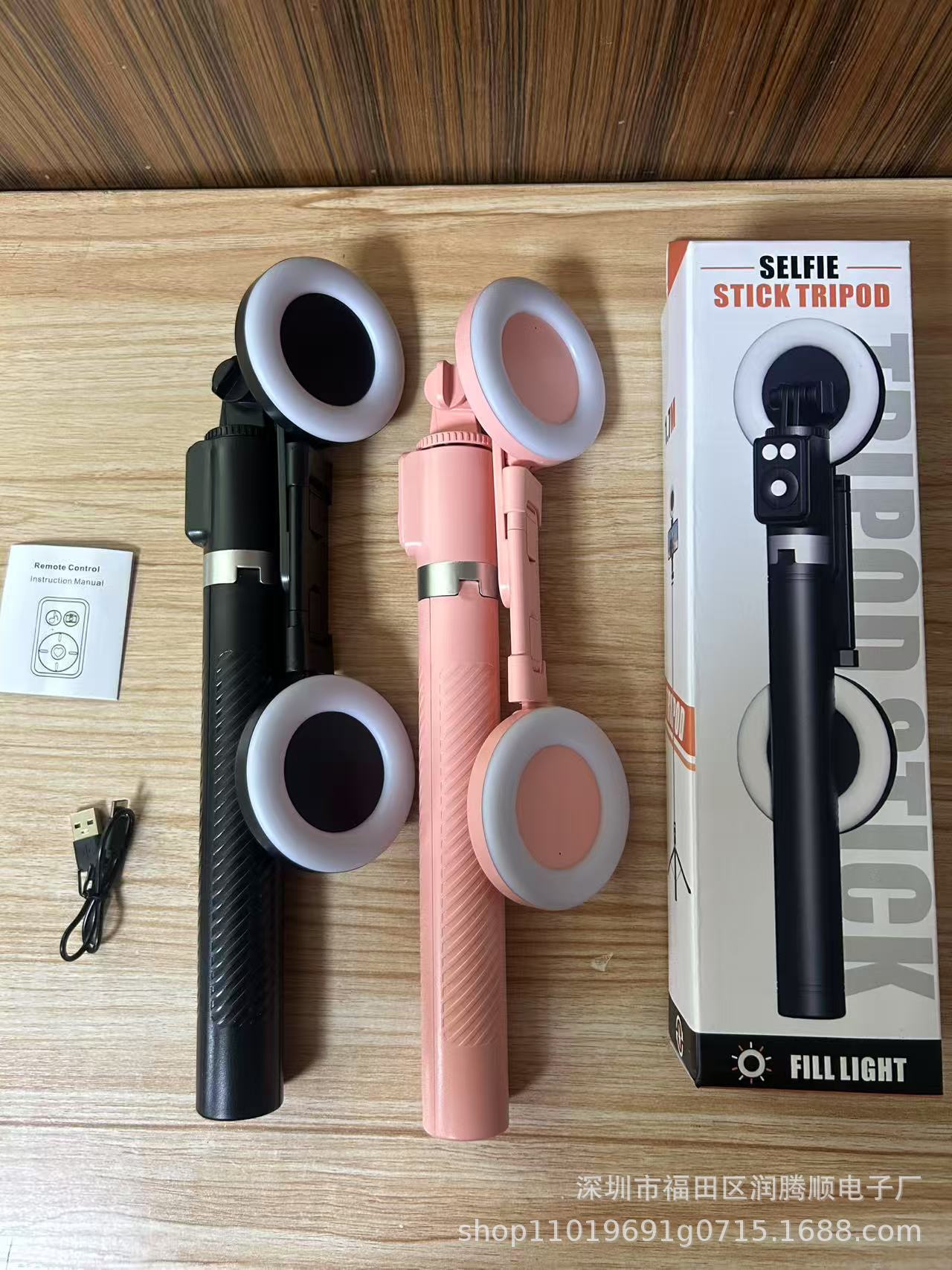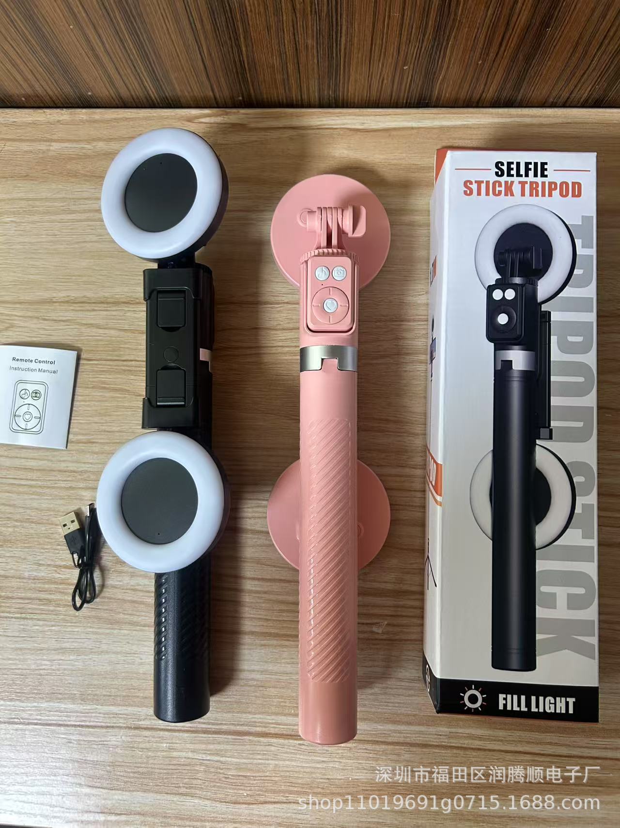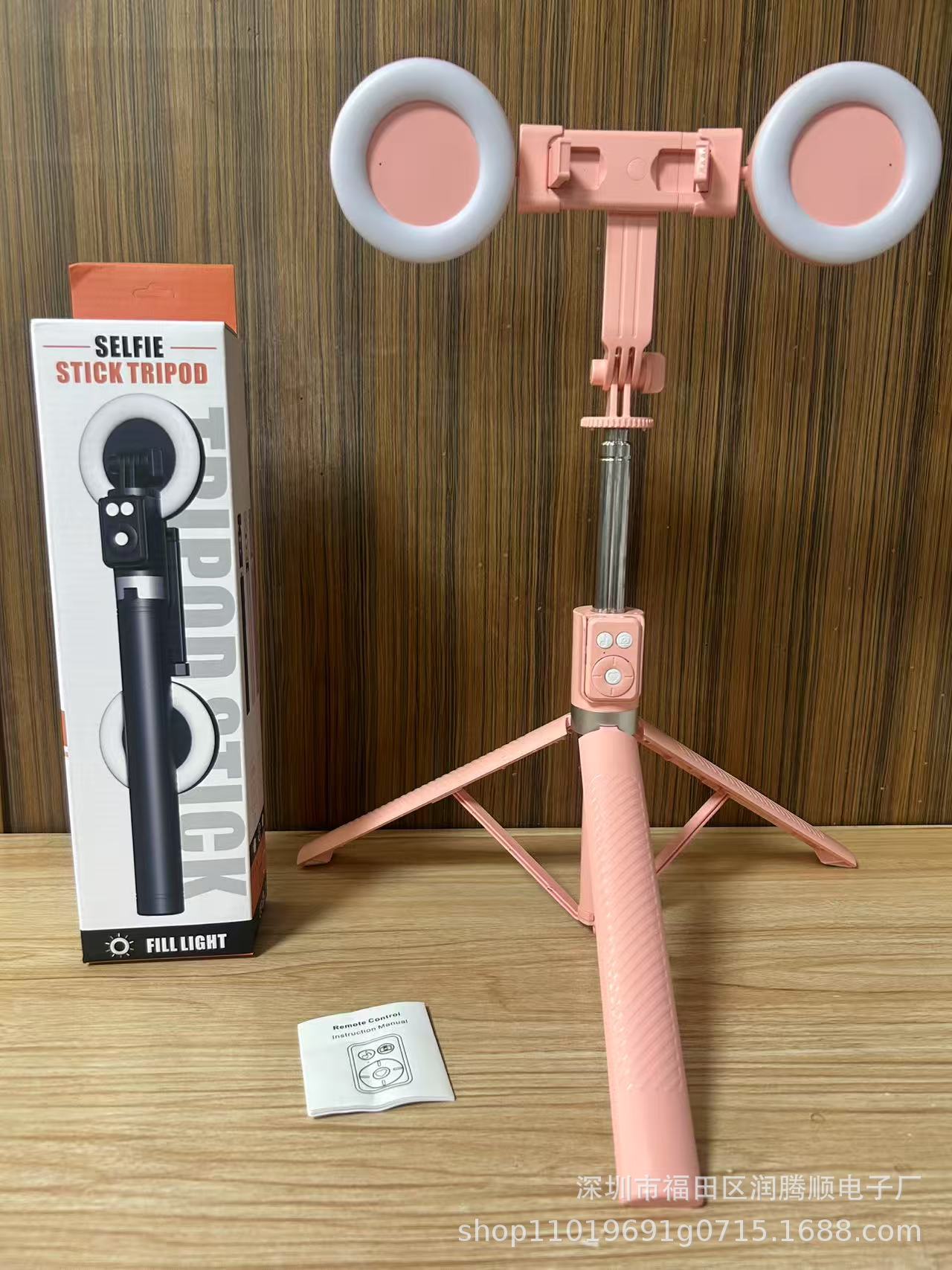 • 핑크 1.8m 블루투스 삼각대 + 대형 원형 조명 2개