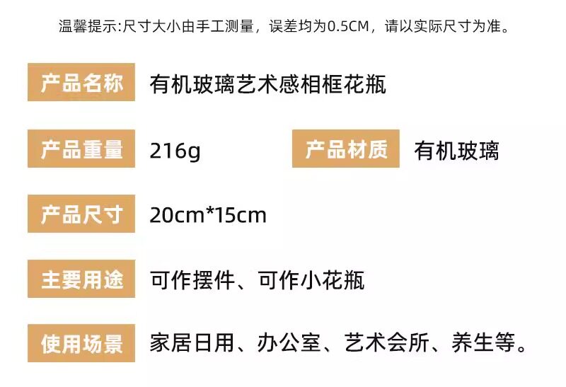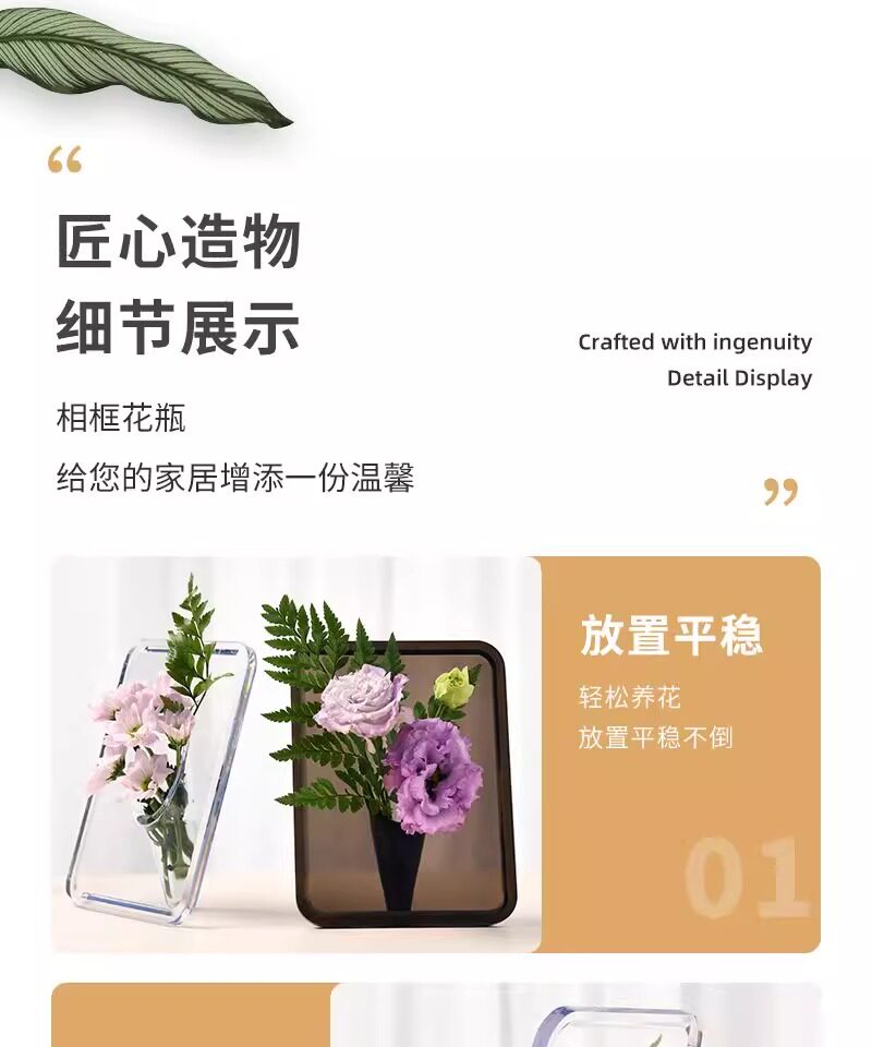 투명 아크릴 꽃병 데스크탑 꽃꽂이 아트 홈 북유럽 ins B&B 호텔 사진 프레임 장식품