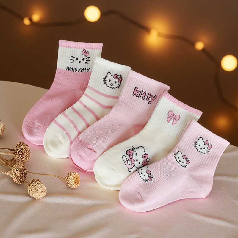 도매 2025 Love Ticktock 가을, 겨울 어린이 양말 만화 귀여운 핑크 소녀 학생 아기 중간 튜브 양말스토어 가기