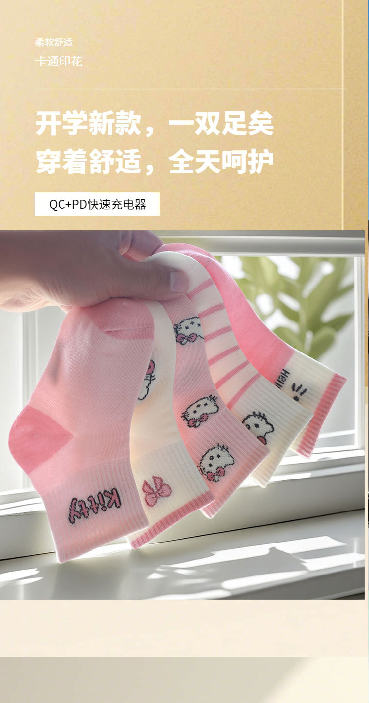도매 2025 Love Ticktock 가을, 겨울 어린이 양말 만화 귀여운 핑크 소녀 학생 아기 중간 튜브 양말