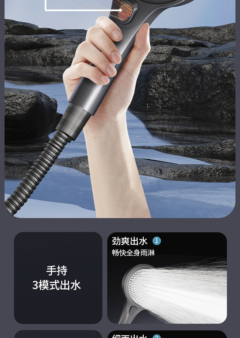 • [블랙 3종세트] 샤워기 + 1.5m호스 + 브라켓