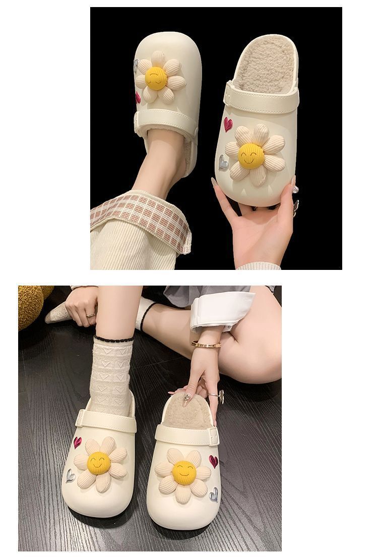여성용 홈 실내 벨벳 따뜻한 면 슬리퍼 2025 가을 겨울 새로운 스타일을위한 세련된 해바라기 다목적 바오 터우 하프 슬리퍼