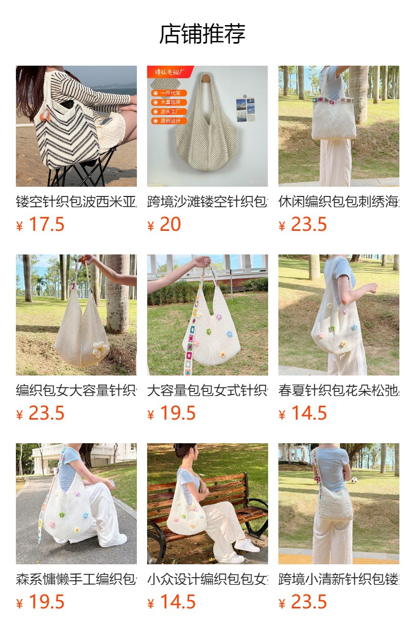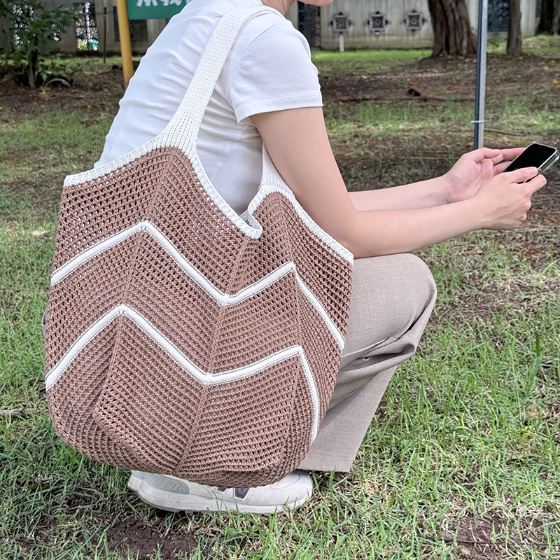 여성을위한 캐주얼 대용량 니트 가방 2025 새로운 인기 다용도 외국 스타일 숄더백 패션 토트 우븐 가방스토어 가기