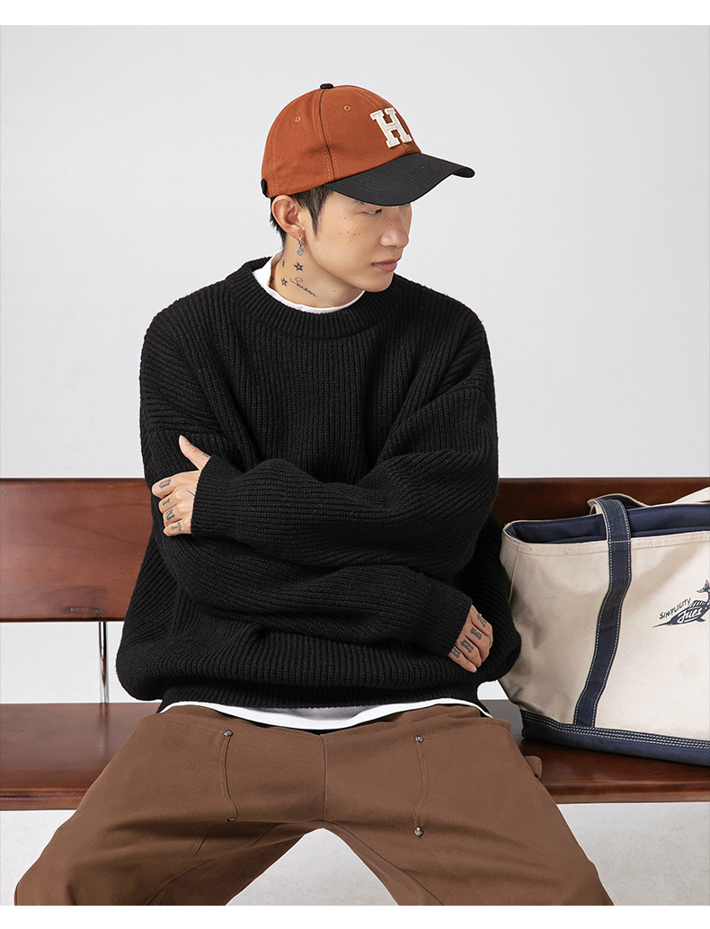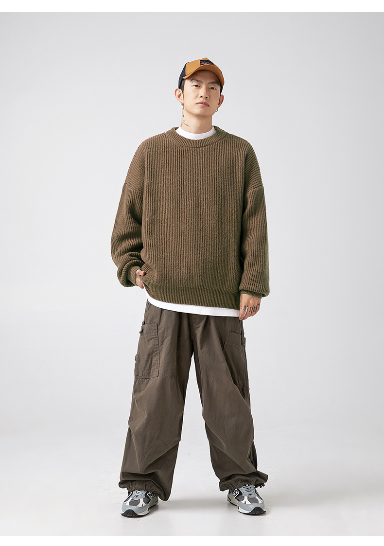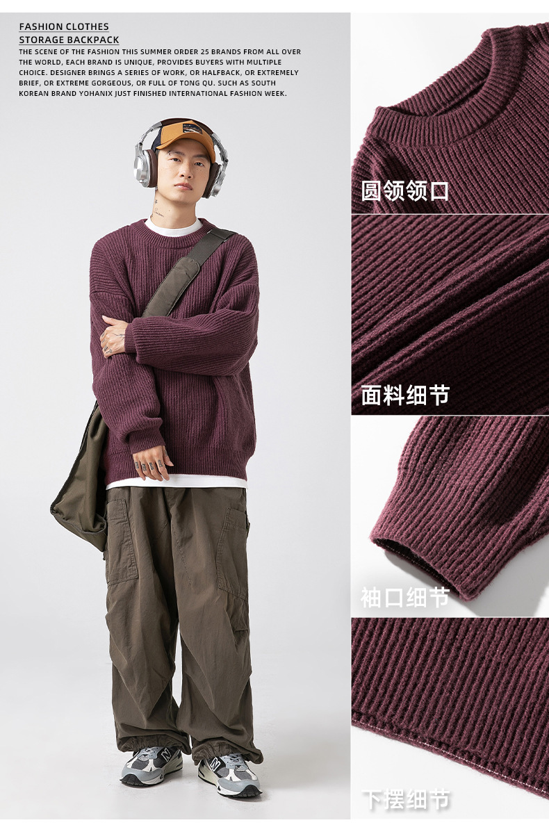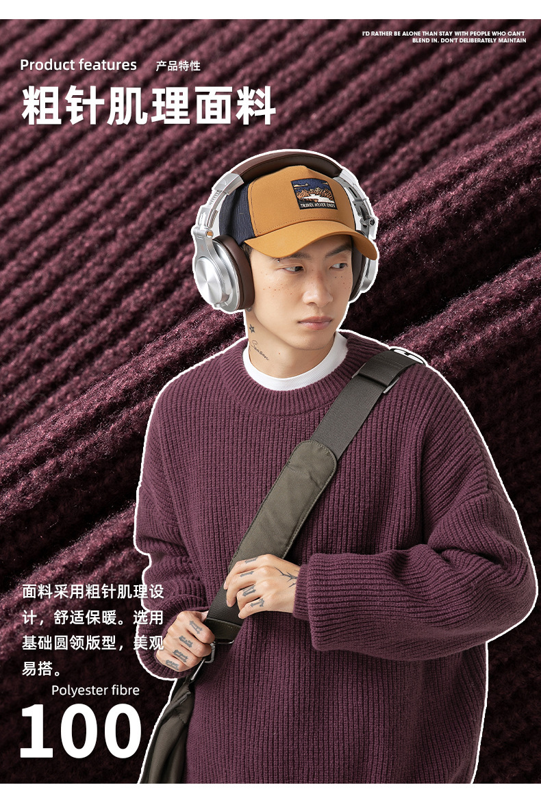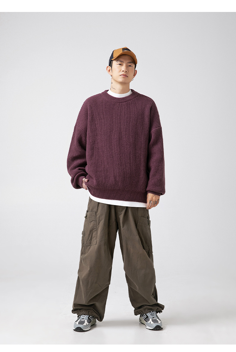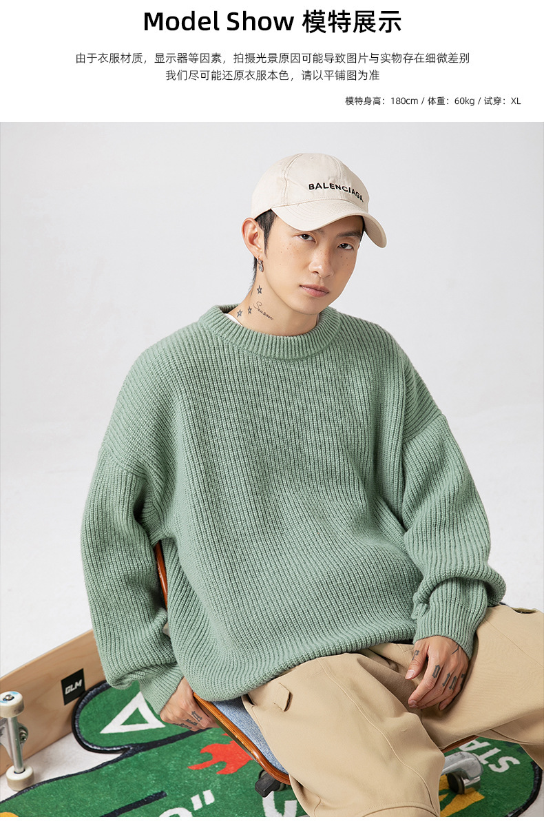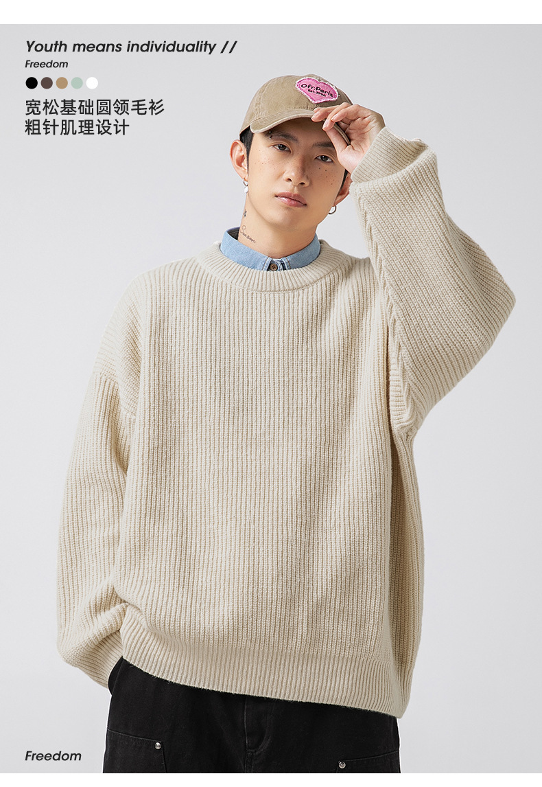 가을 겨울 남성용 두꺼운 두꺼운 니트 스웨터 기본 솔리드 컬러 루즈 라운드 넥 스웨터 재킷