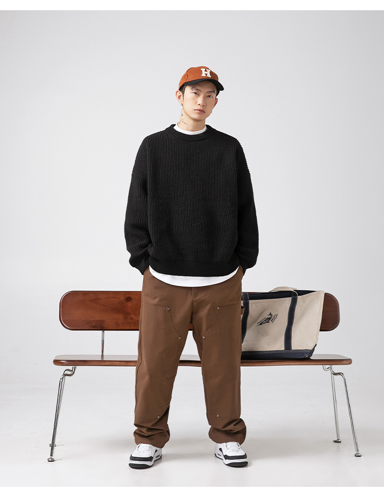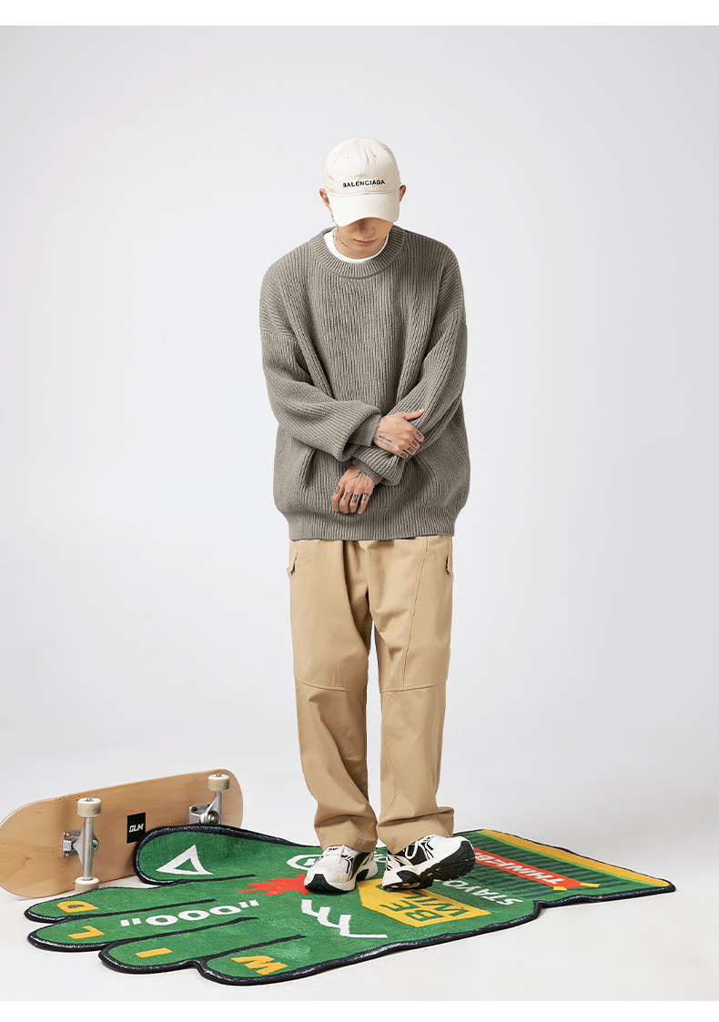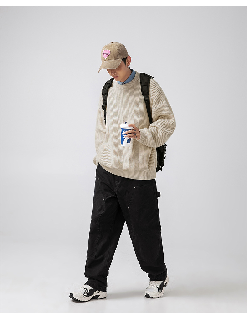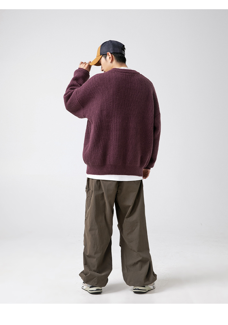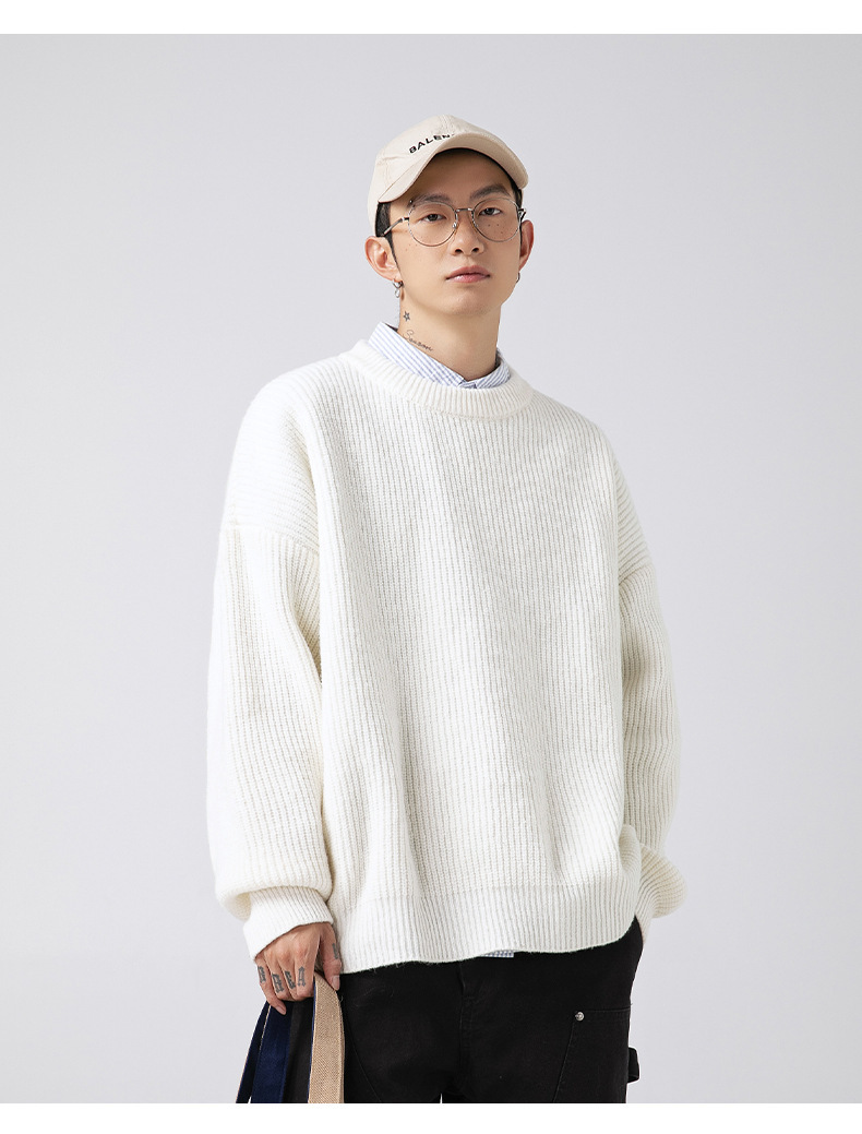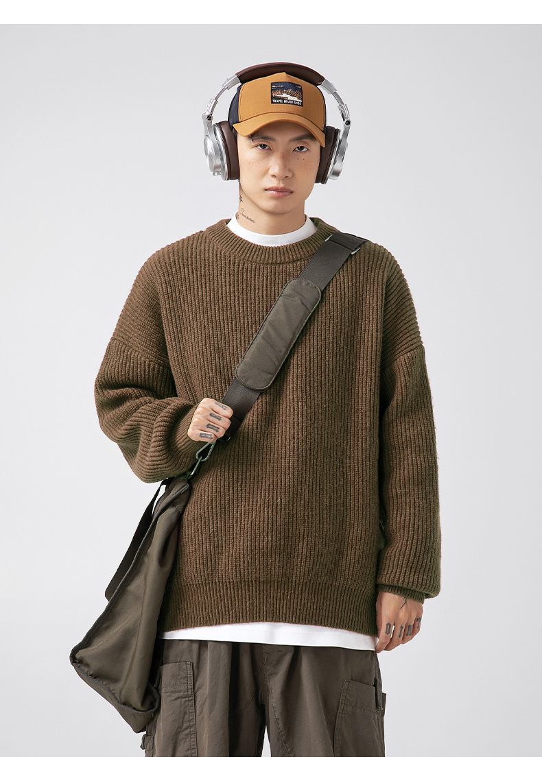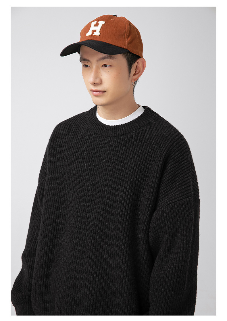가을 겨울 남성용 두꺼운 두꺼운 니트 스웨터 기본 솔리드 컬러 루즈 라운드 넥 스웨터 재킷