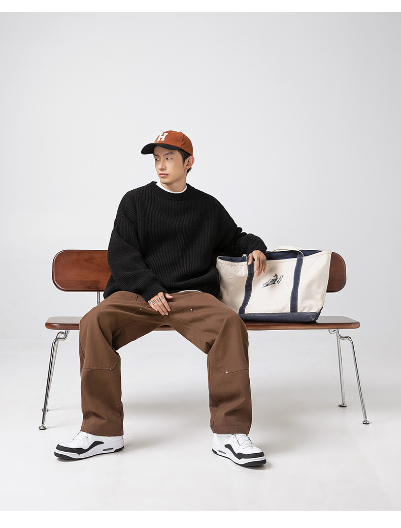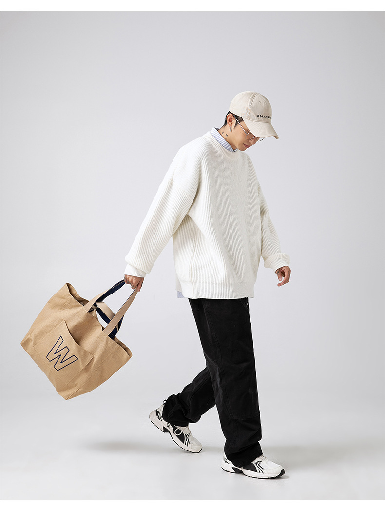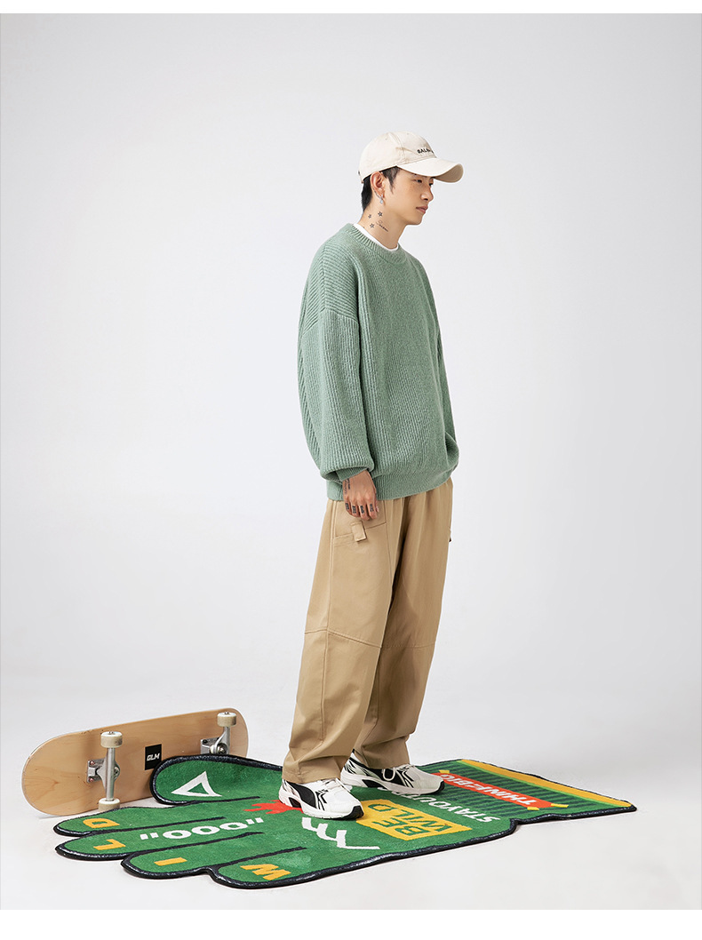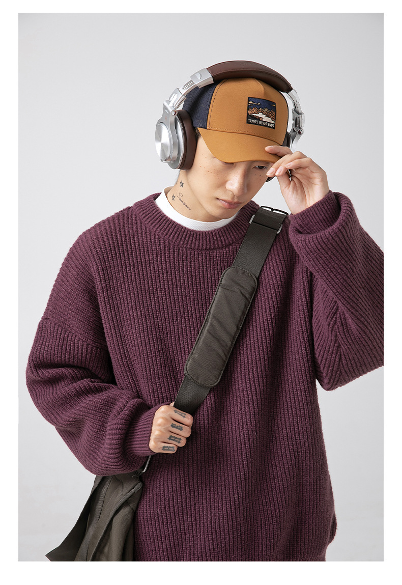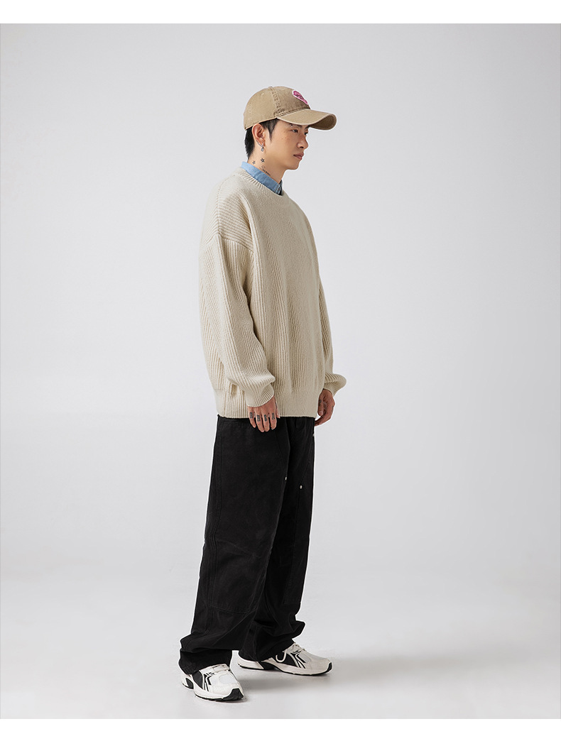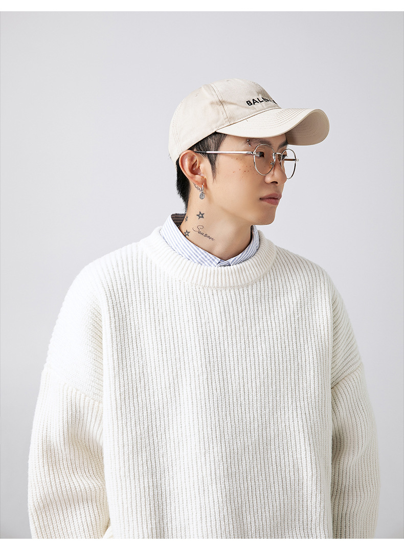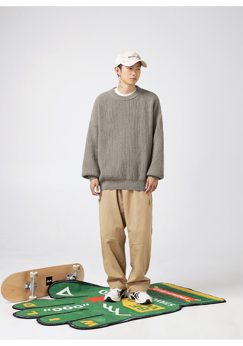 가을 겨울 남성용 두꺼운 두꺼운 니트 스웨터 기본 솔리드 컬러 루즈 라운드 넥 스웨터 재킷