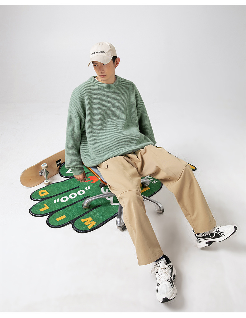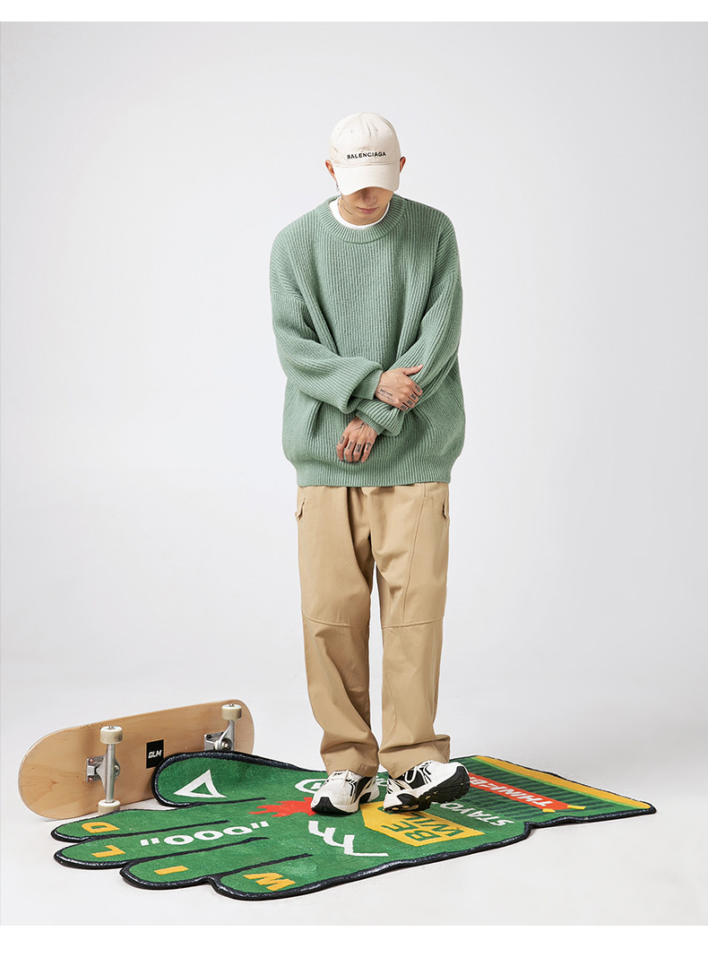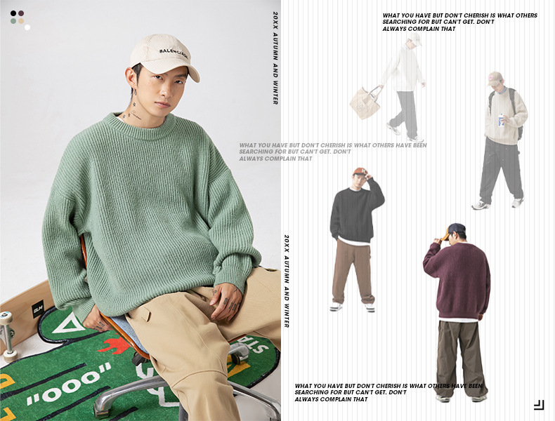 가을 겨울 남성용 두꺼운 두꺼운 니트 스웨터 기본 솔리드 컬러 루즈 라운드 넥 스웨터 재킷스토어 가기