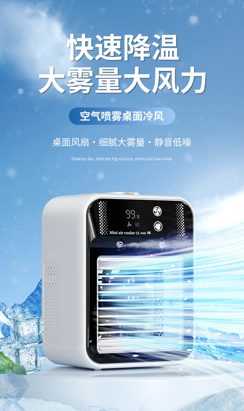 D5OUSB 스프레이 가습 미니 에어컨 팬 데스크탑 수냉 팬 기숙사 모바일 냉동 선풍기 냉각
