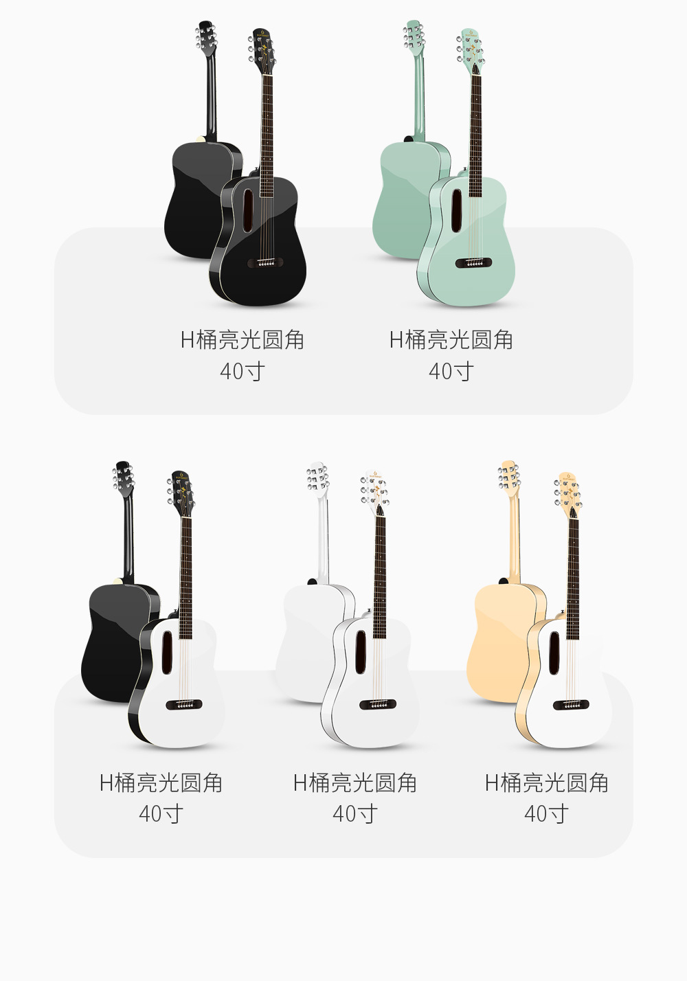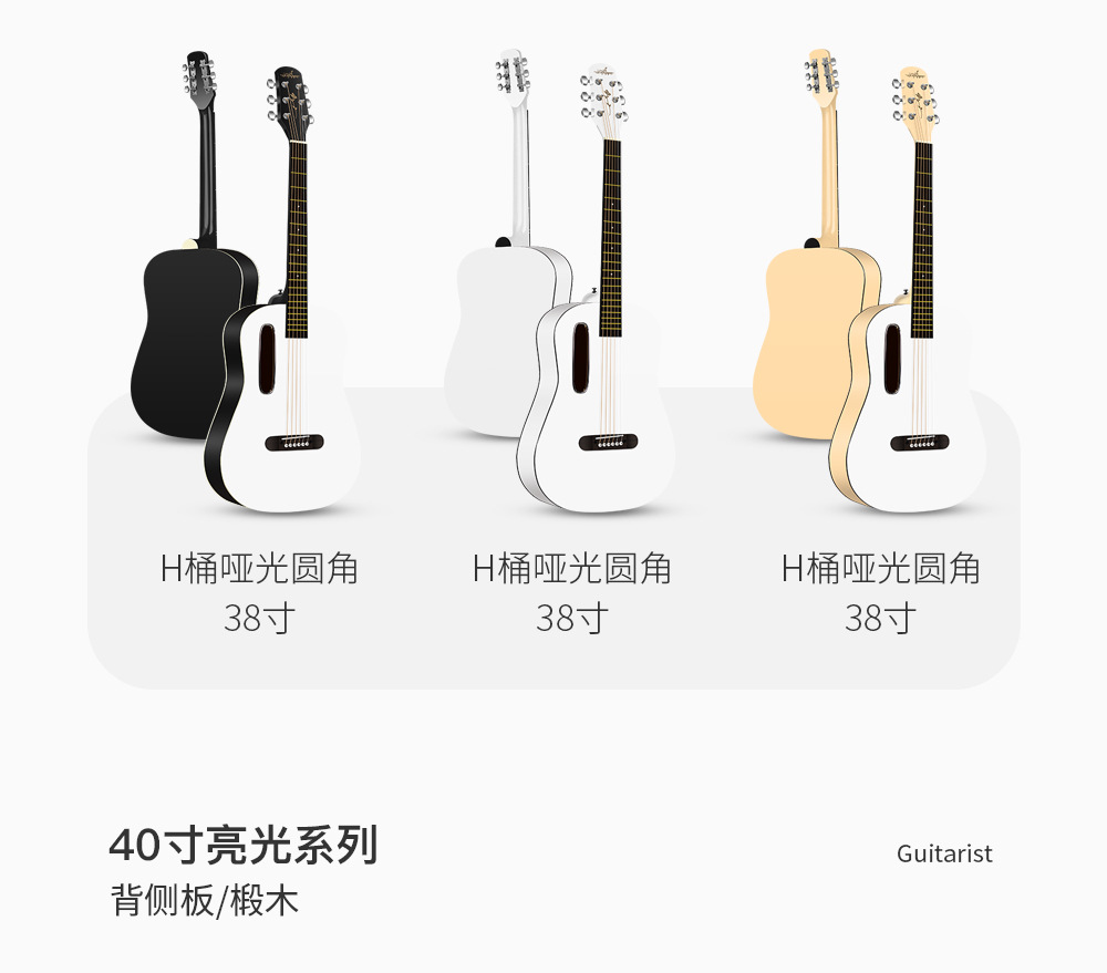 • 포크 기타 H 배럴 38inch 풀 참피나무 흑백