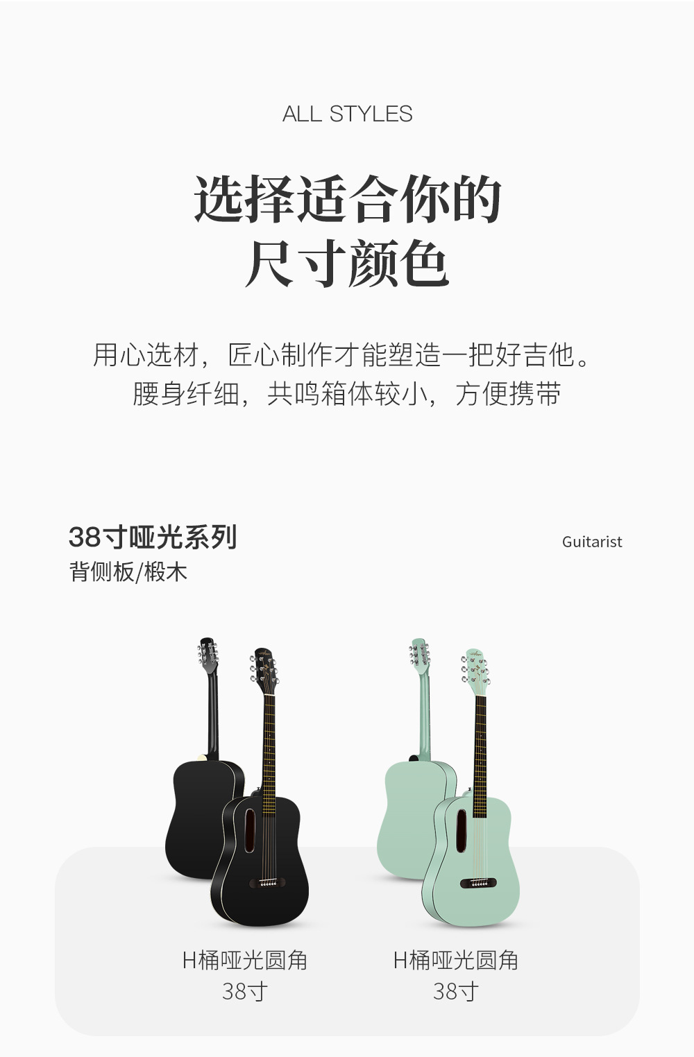 • 포크 기타 H 배럴 38inch 풀 린든 블랙