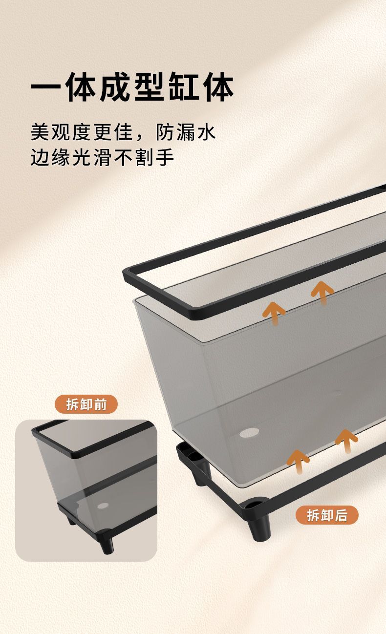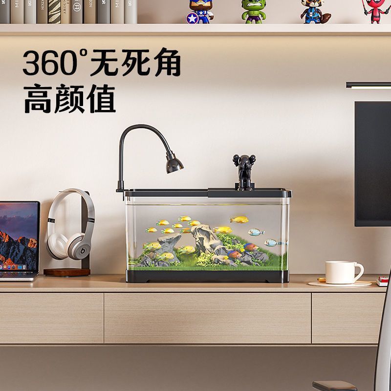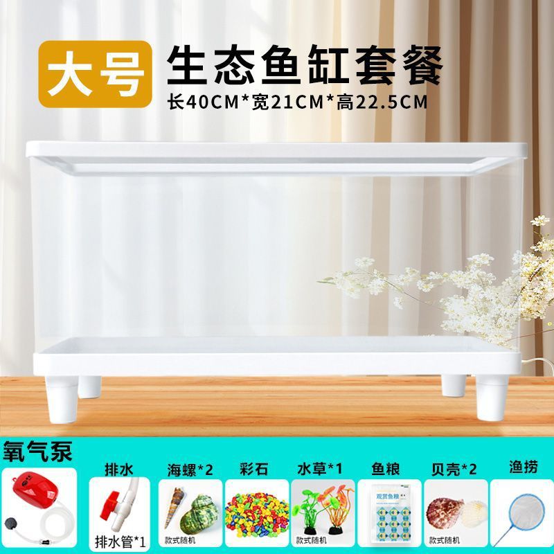 아크릴 투명 물고기 탱크 플라스틱 금붕어 탱크 거실 작은 가정용 생태 탱크 바닥 배수 데스크탑 Zhao Zhiwu