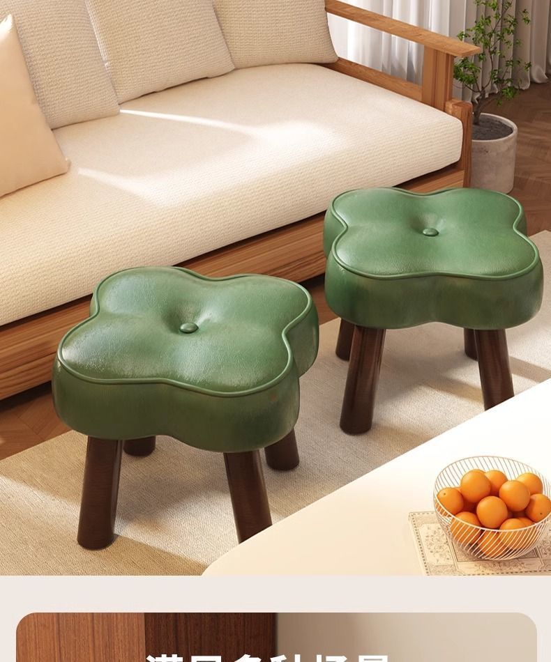 단단한 나무 작은 의자 홈 거실 소파 의자 부드러운 가죽 벤치 문 신발 변경 의자 빛 럭셔리 낮은 의자스토어 가기