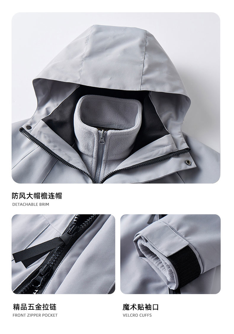 厂家直销春秋情侣三防冲锋衣户外防风防水登山夹克男帽可脱卸2518