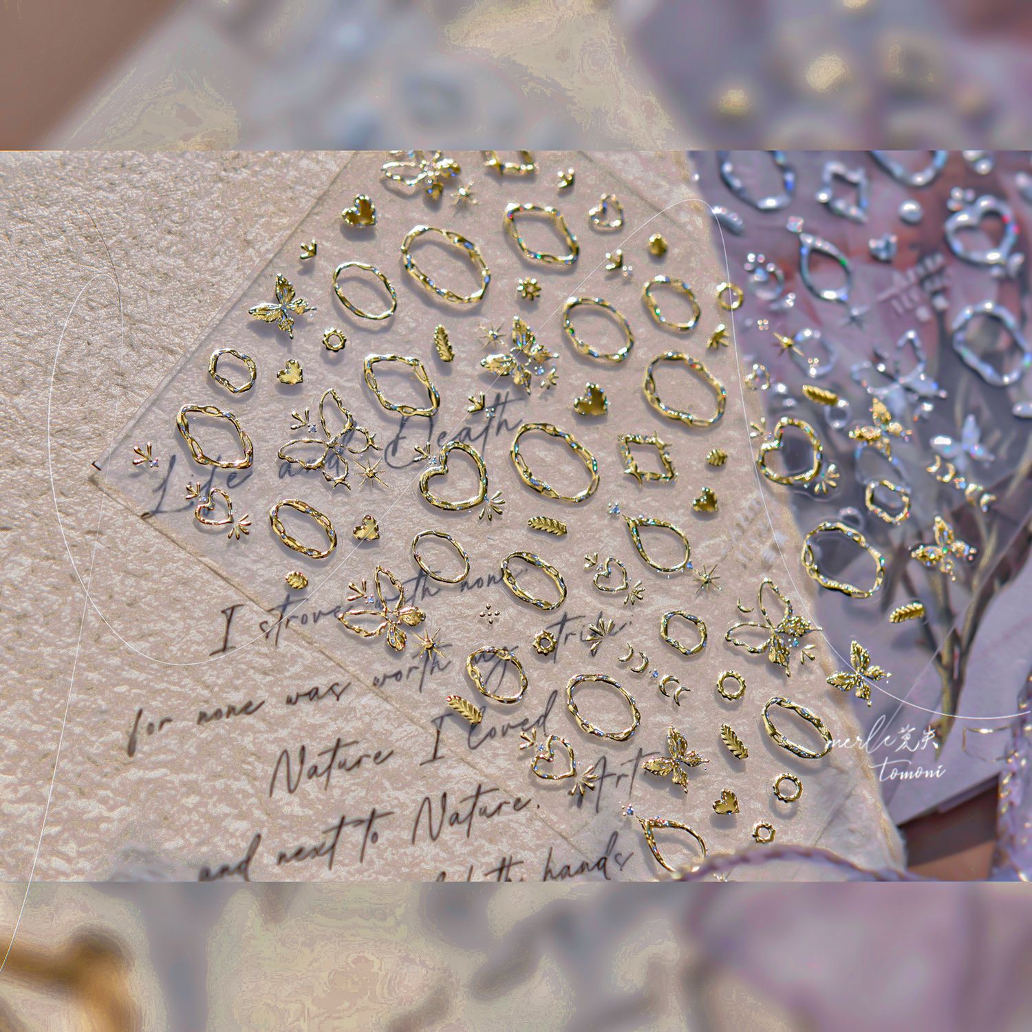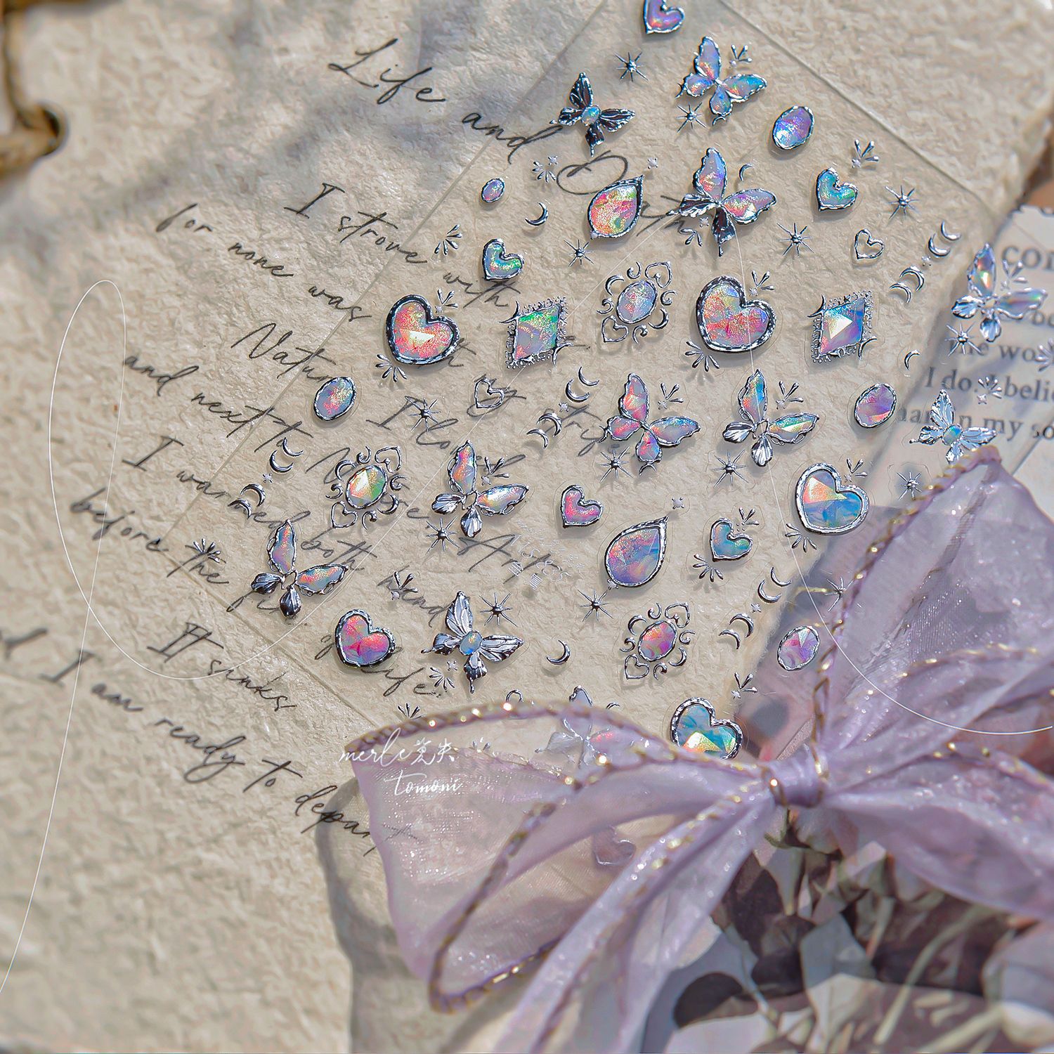 tomoni&모스 금속 고귀하고 우아한 네일 아트 스티커 가볍고 성숙한 스타일 네일 스티커 나비 사랑 전체 스티커 소재