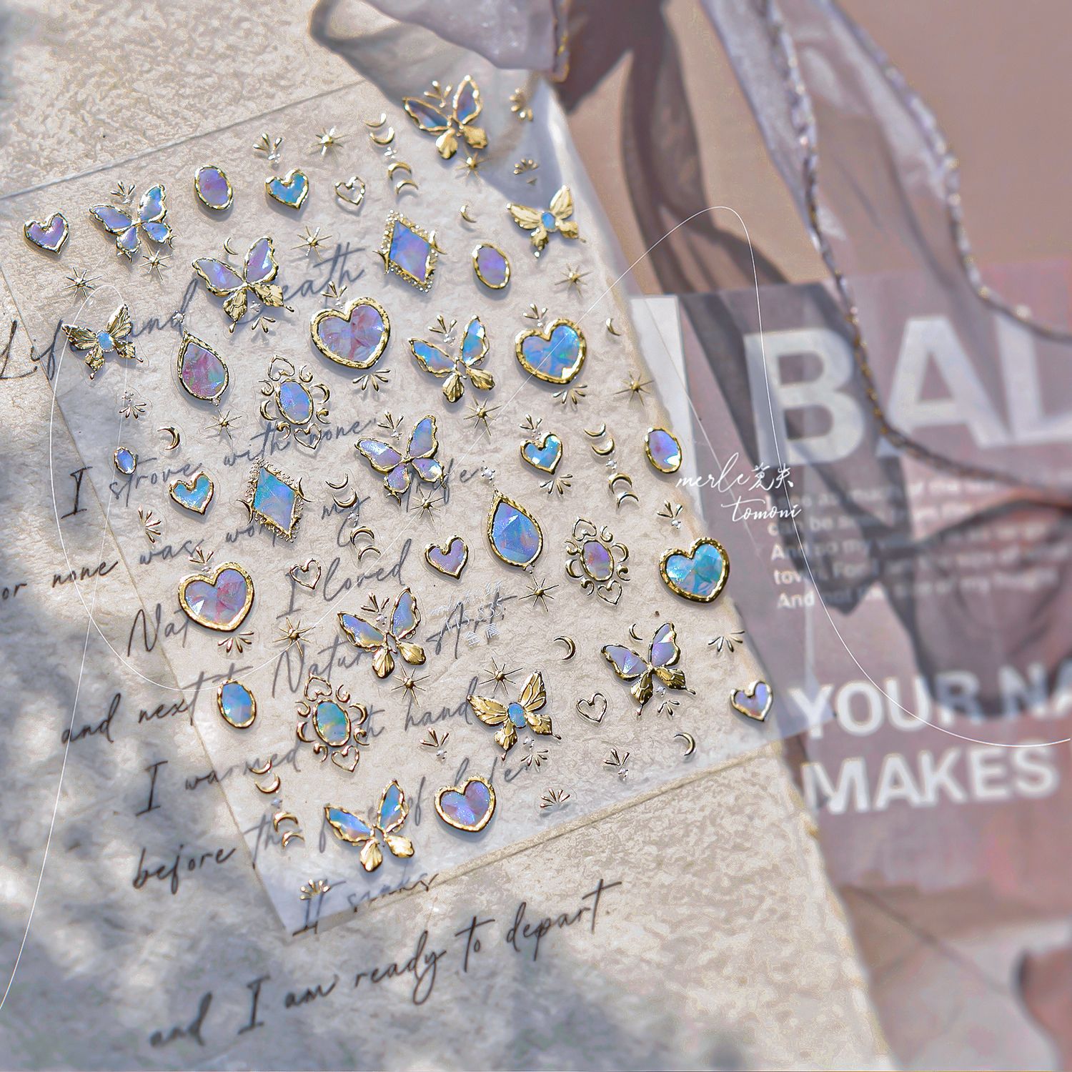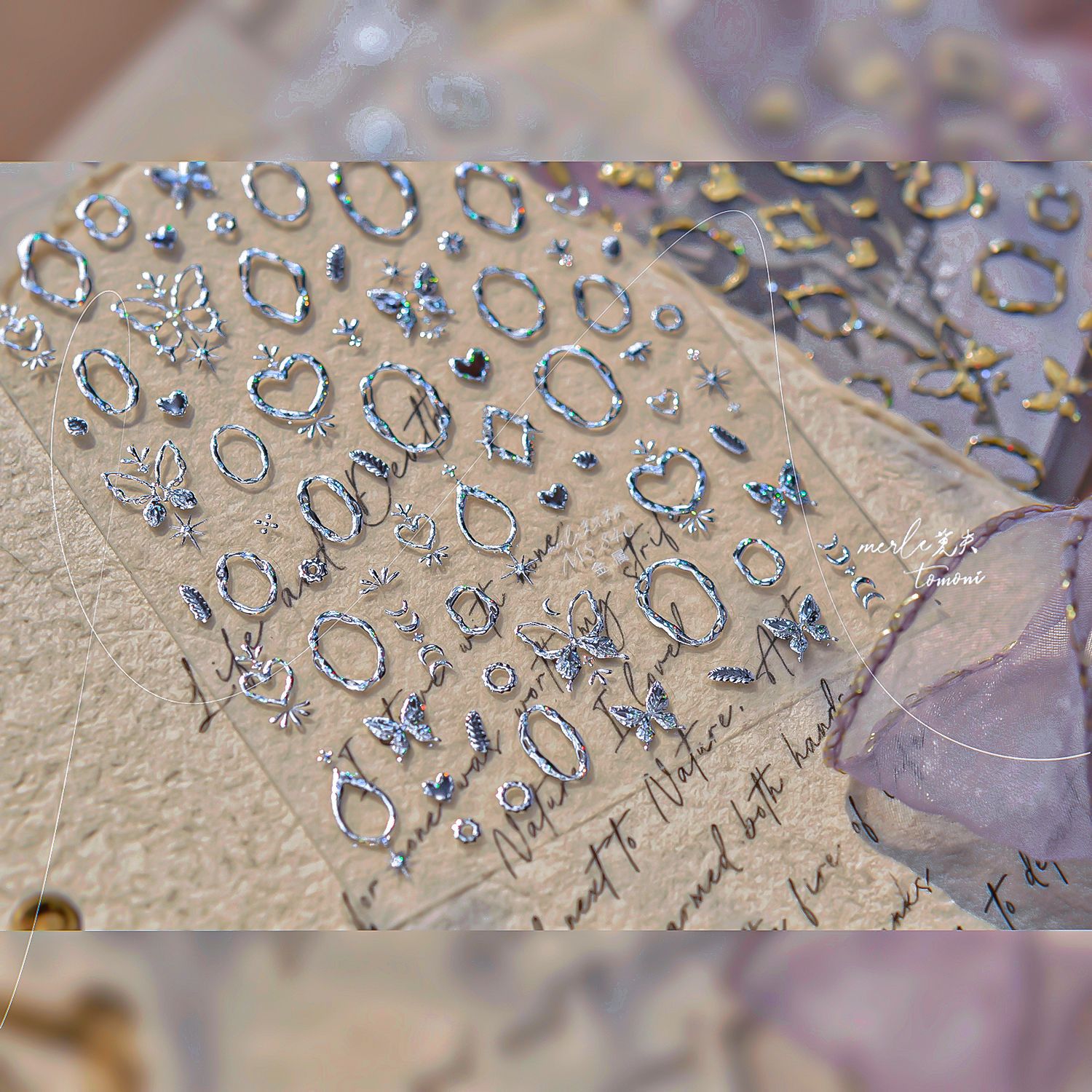 tomoni&모스 금속 고귀하고 우아한 네일 아트 스티커 가볍고 성숙한 스타일 네일 스티커 나비 사랑 전체 스티커 소재스토어 가기