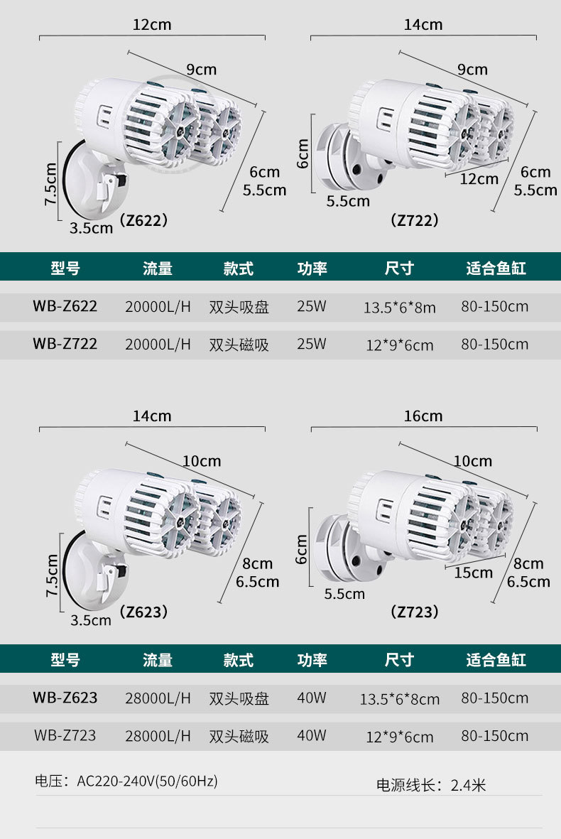 • WB-Z722 더블 헤드 자기 흡입 모델 25W(80-150cm 실린더)