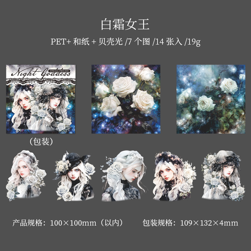 좋은 하루 PET 스티커 팩 다크 나이트 여신 시리즈 쉘 라이트 캐릭터 핸드북 소재 스티커 14개