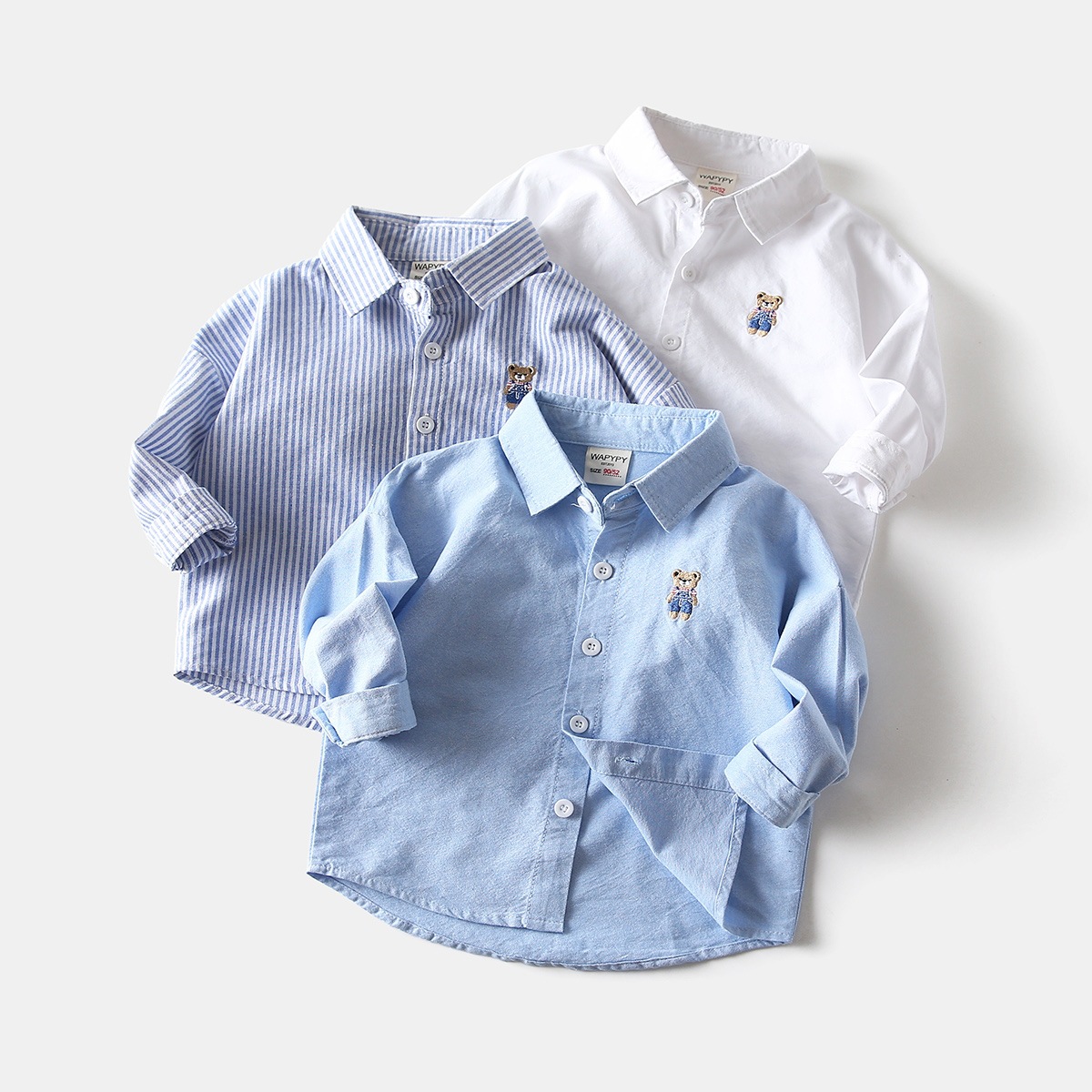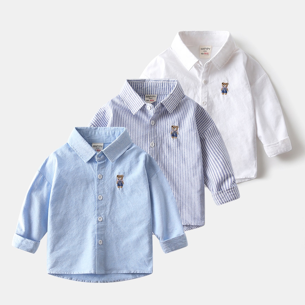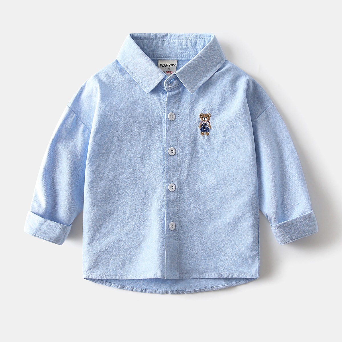 소년 긴팔 셔츠 2025 새로운 어린이 옥스포드 섬유 셔츠 중형 및 대형 소년 캐주얼 셔츠 도매 트렌드스토어 가기