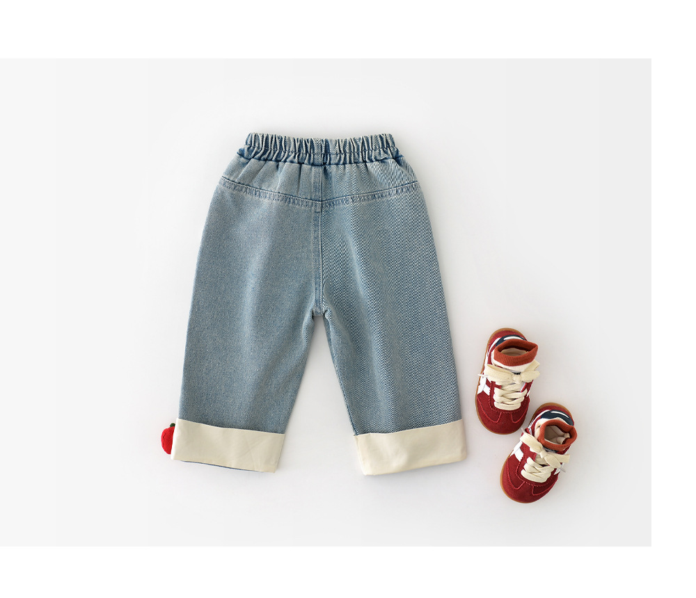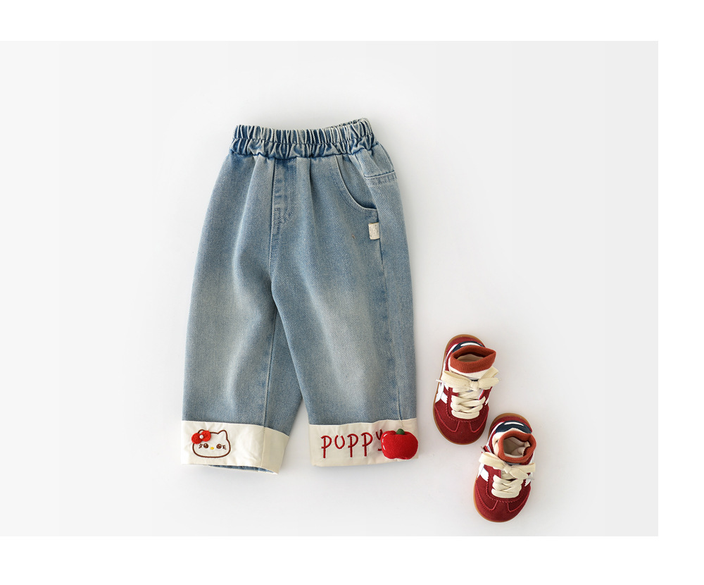 2025 새로운 가을 한국 스타일 소녀 만화 고양이 데님 바지 유아 및 어린이 중간 허리 스플 라이스 바지 53521스토어 가기