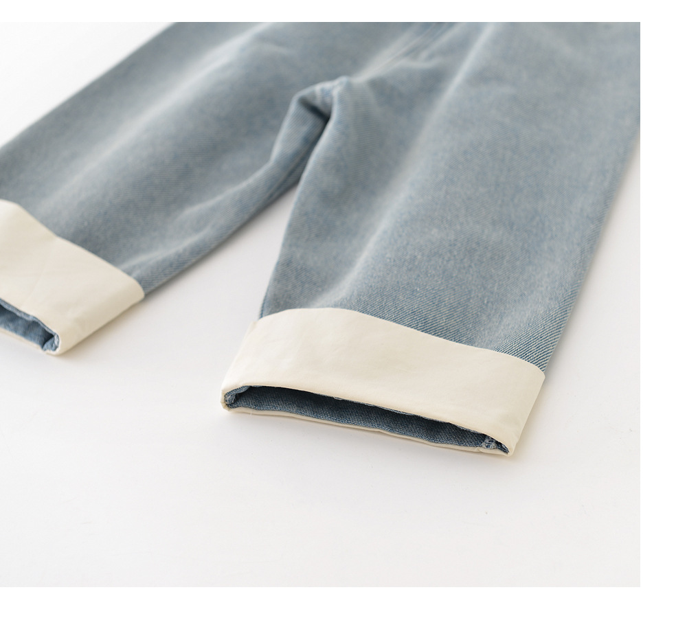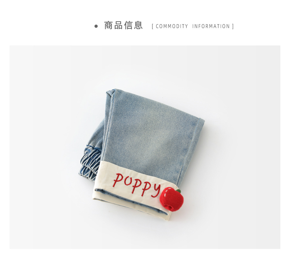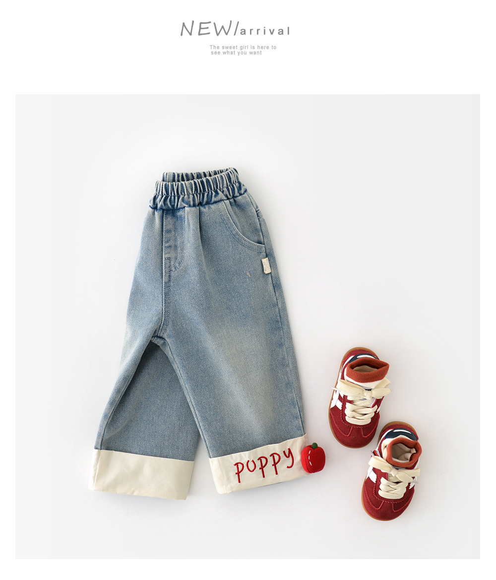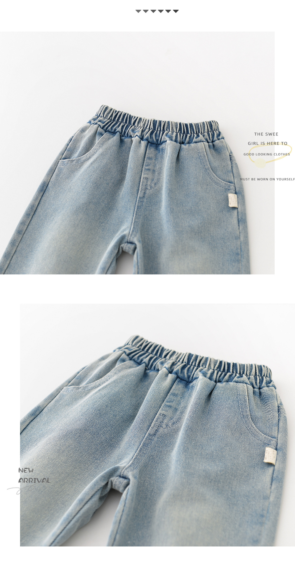 2025 새로운 가을 한국 스타일 소녀 만화 고양이 데님 바지 유아 및 어린이 중간 허리 스플 라이스 바지 53521