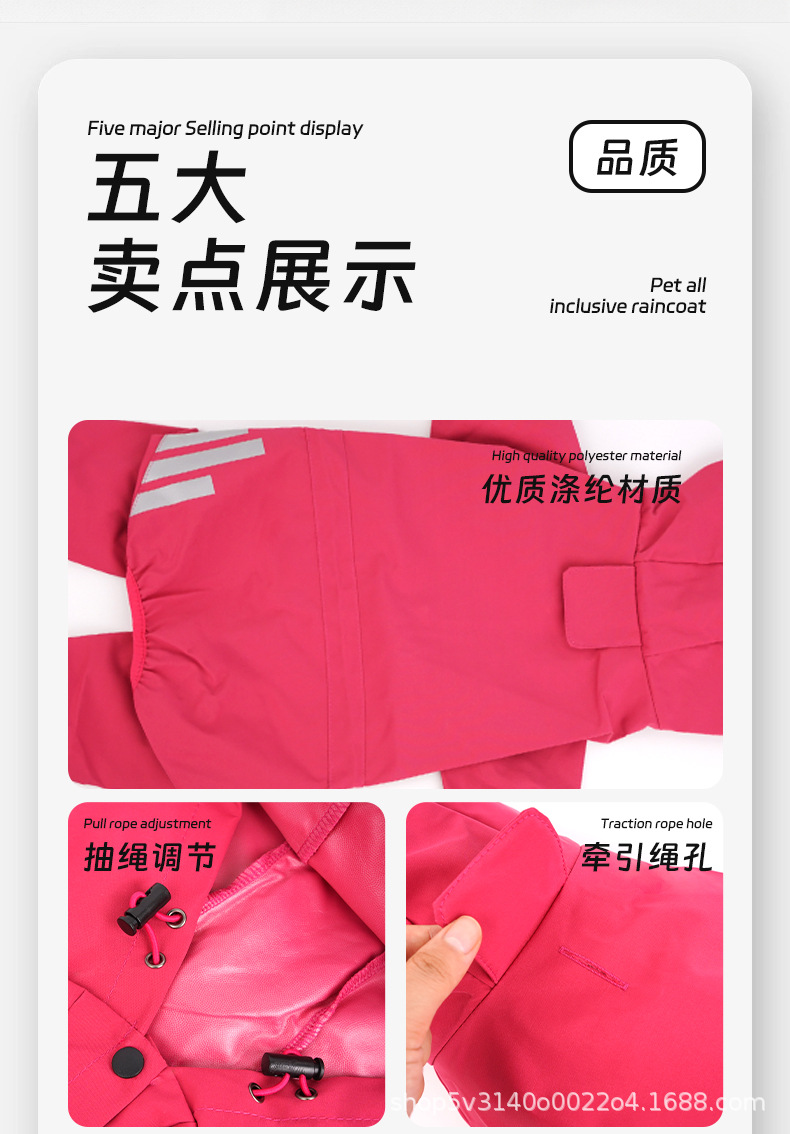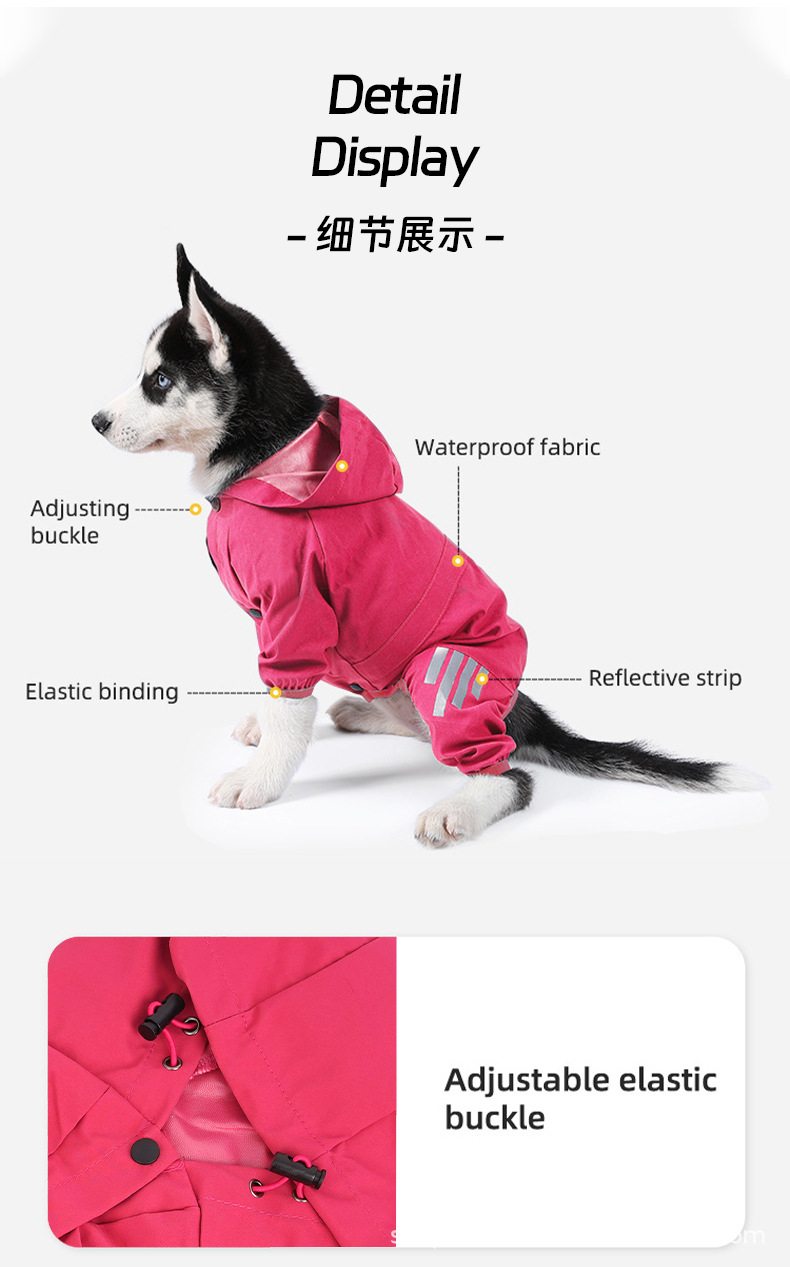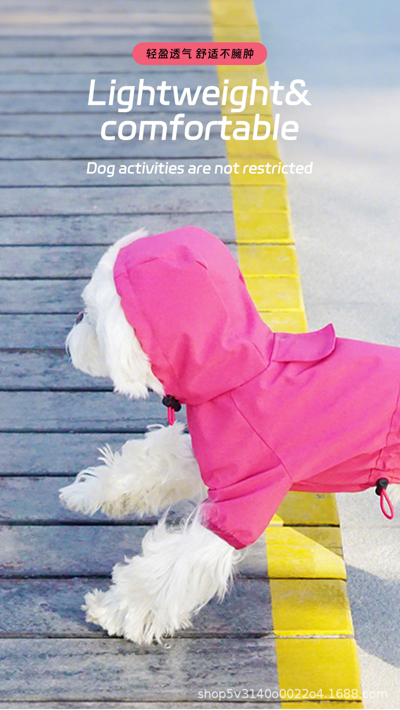 귀여운 핑크 강아지 방수 비옷 졸라매는 끈 디자인 반사 줄무늬 인쇄 애완 동물 강아지를위한 얇은 재킷