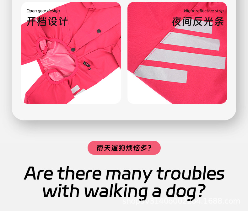 귀여운 핑크 강아지 방수 비옷 졸라매는 끈 디자인 반사 줄무늬 인쇄 애완 동물 강아지를위한 얇은 재킷스토어 가기