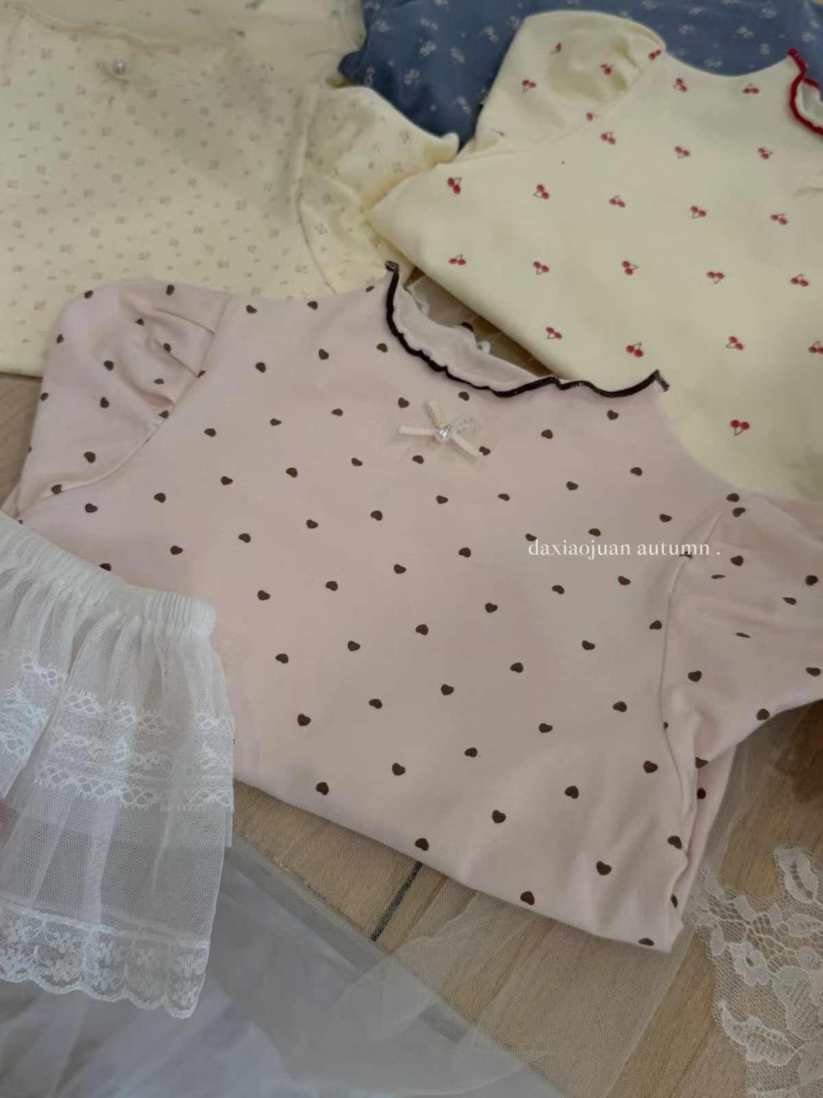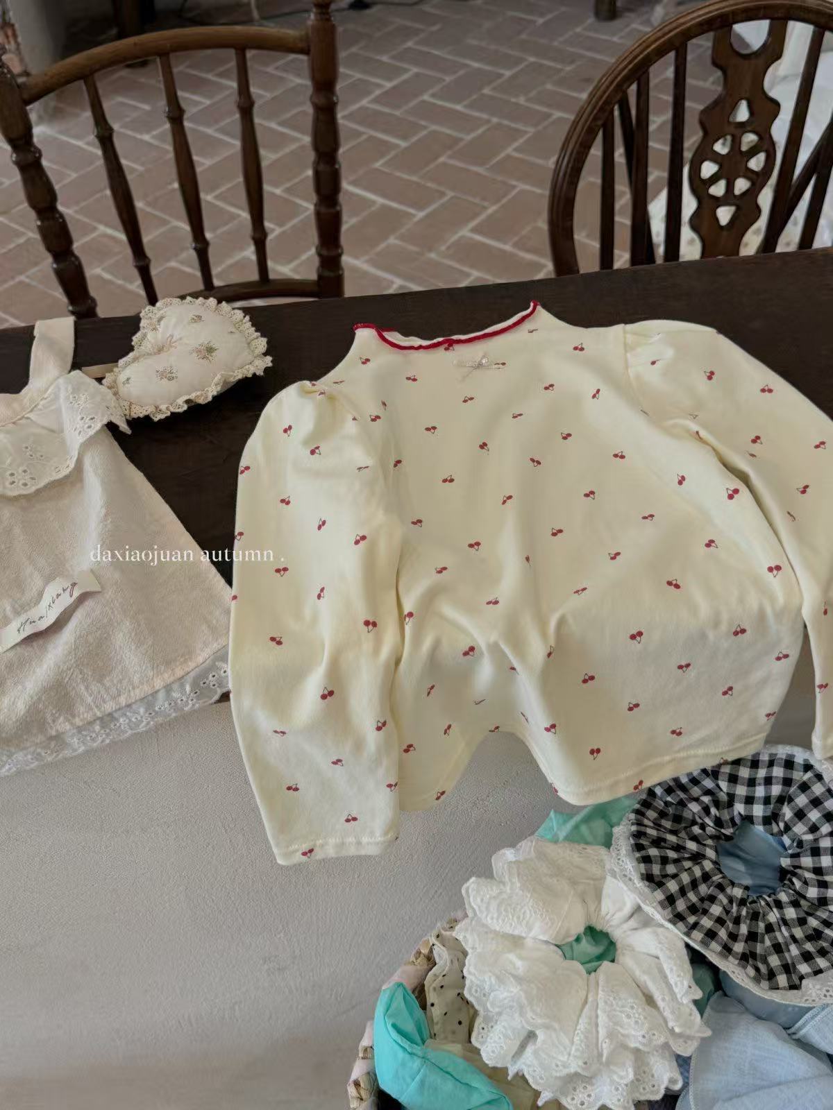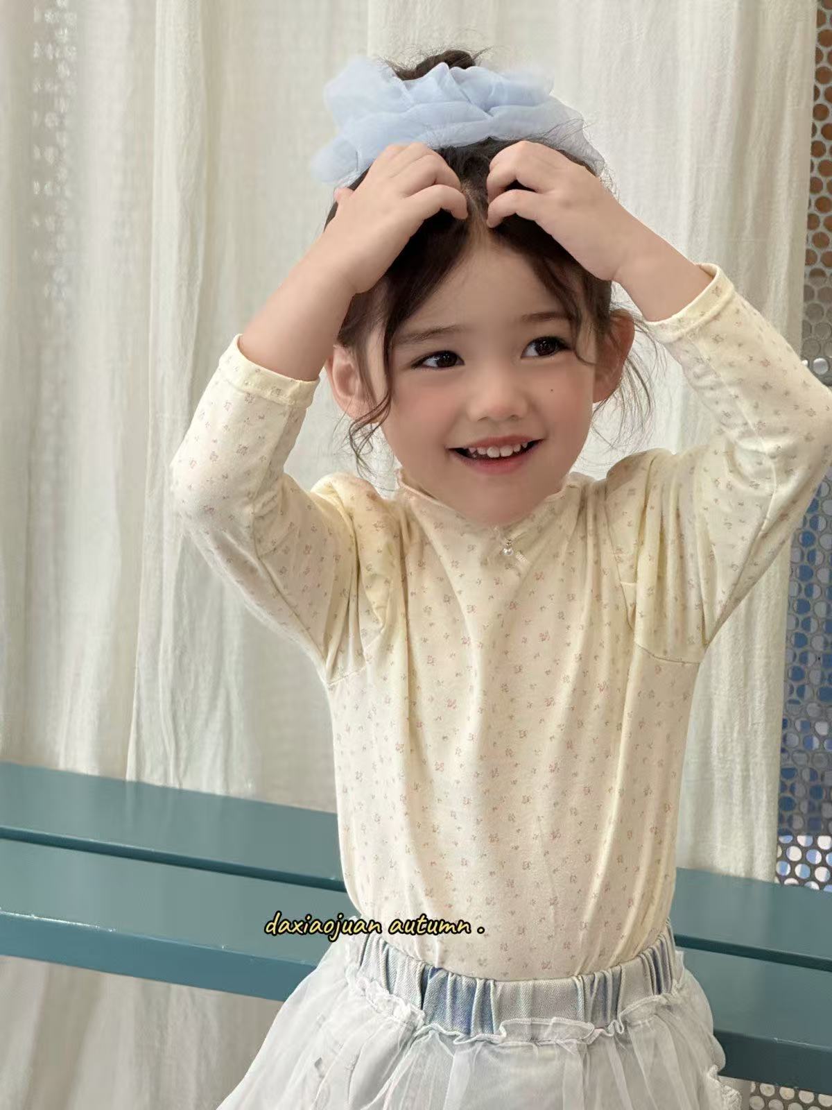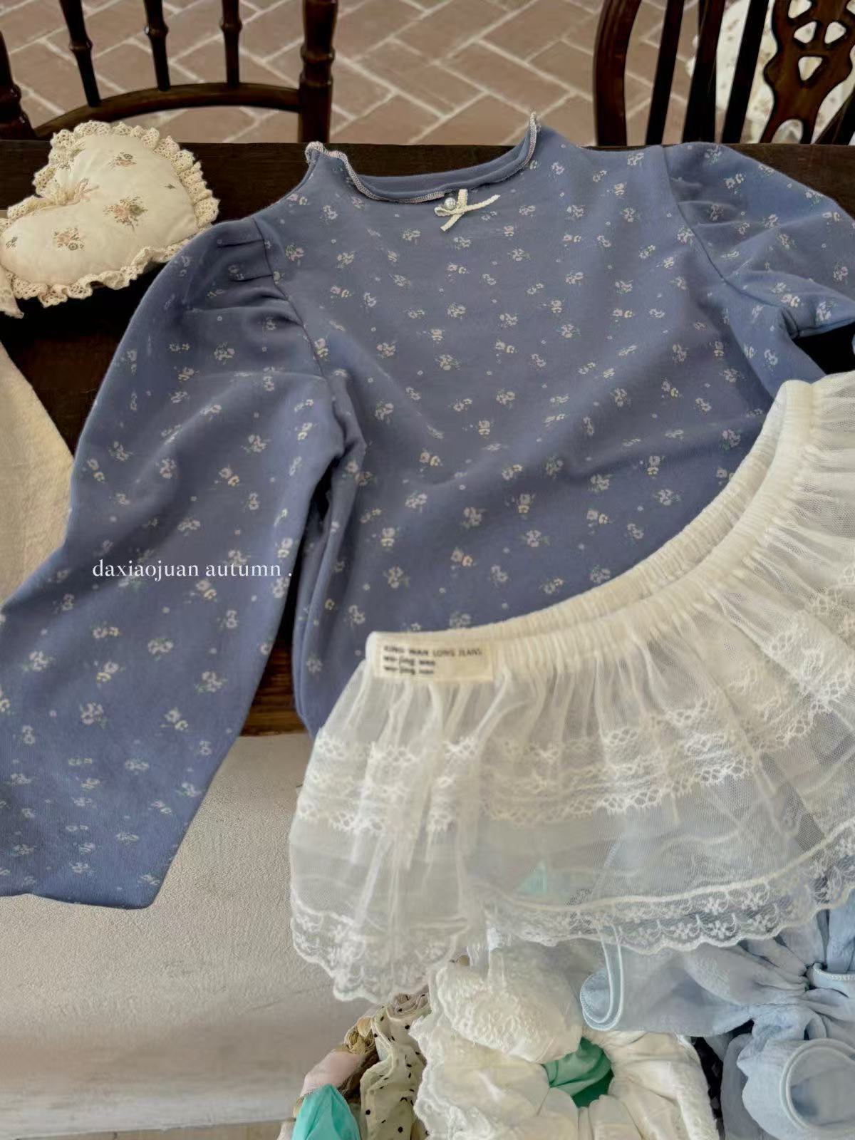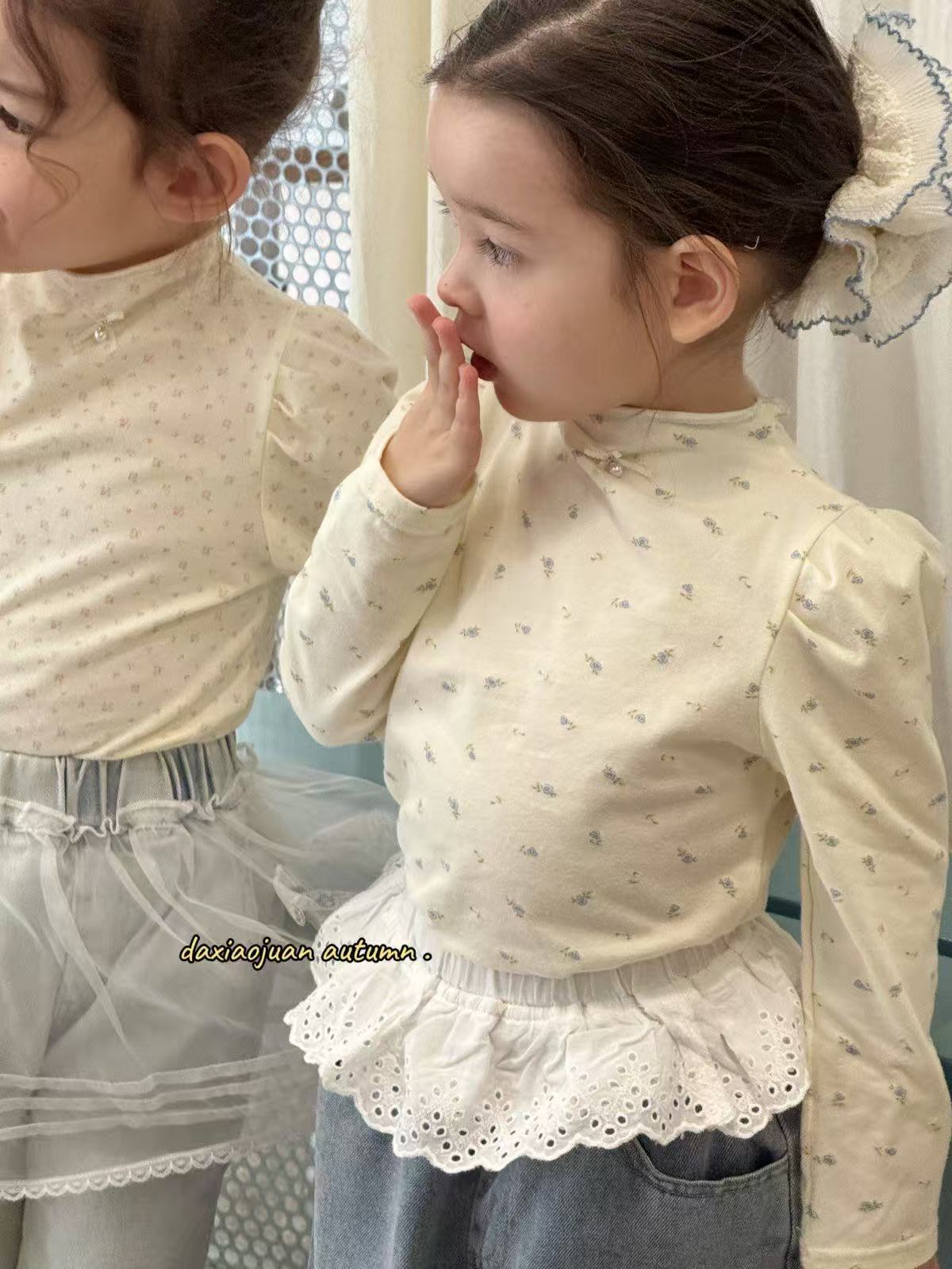 크고 작은 사이즈 아동복 25 가을 여아 하의 셔츠 여아 꽃무늬 달콤한 레이스 칼라 귀달이 달콤한 긴팔 티셔츠