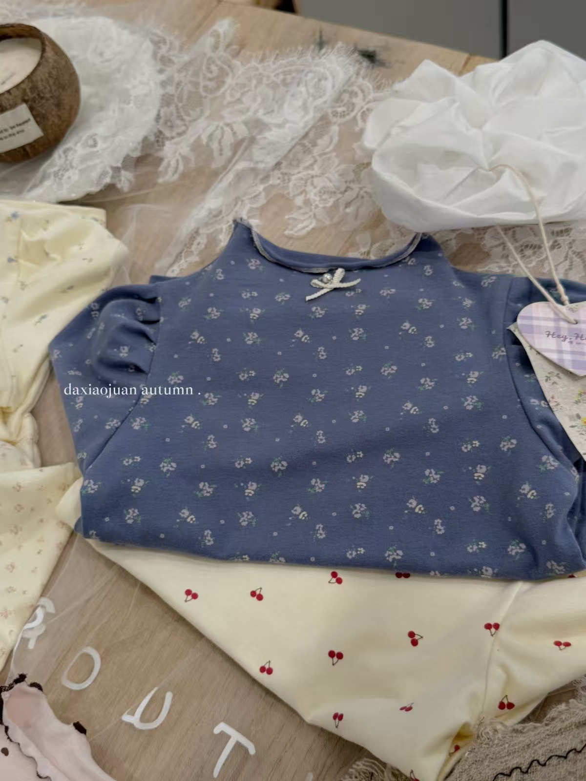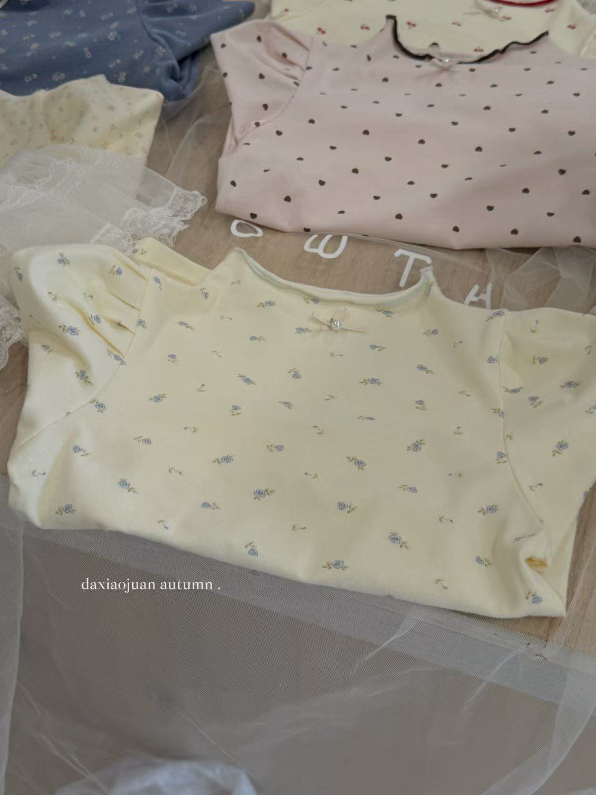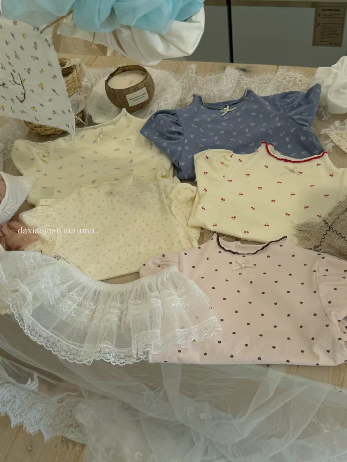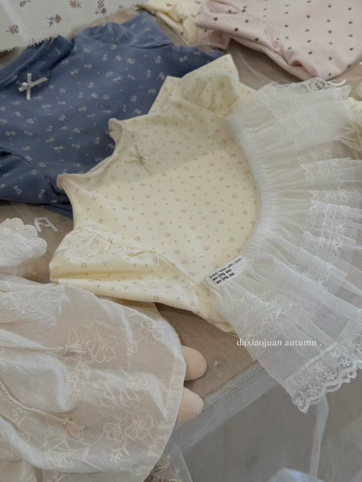 크고 작은 사이즈 아동복 25 가을 여아 하의 셔츠 여아 꽃무늬 달콤한 레이스 칼라 귀달이 달콤한 긴팔 티셔츠