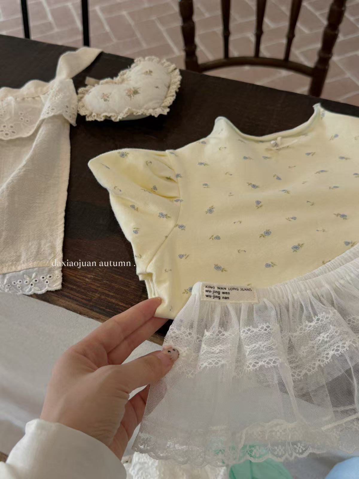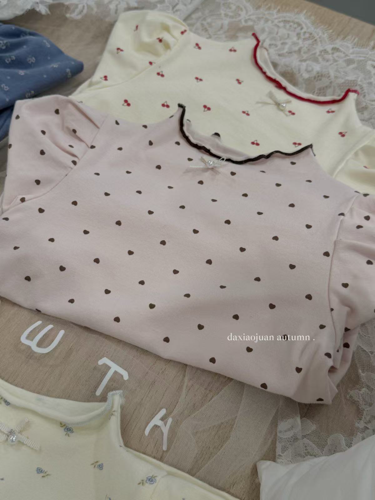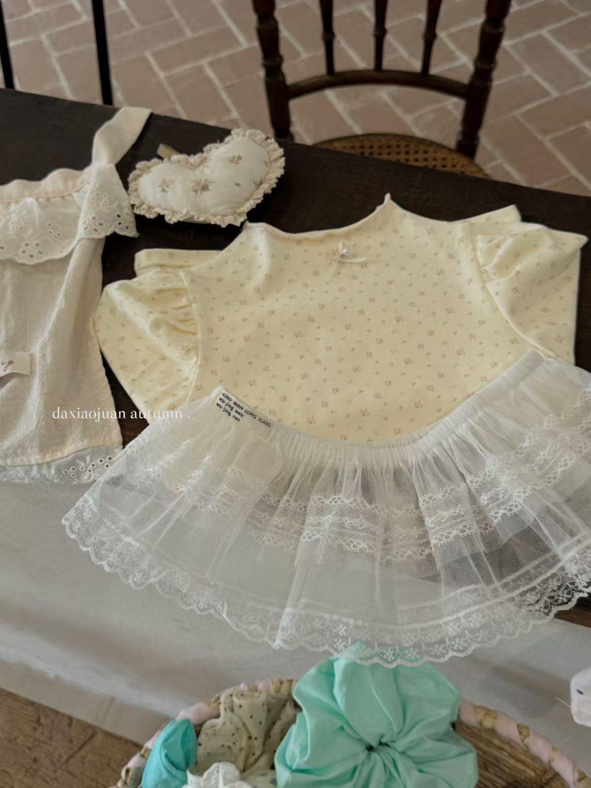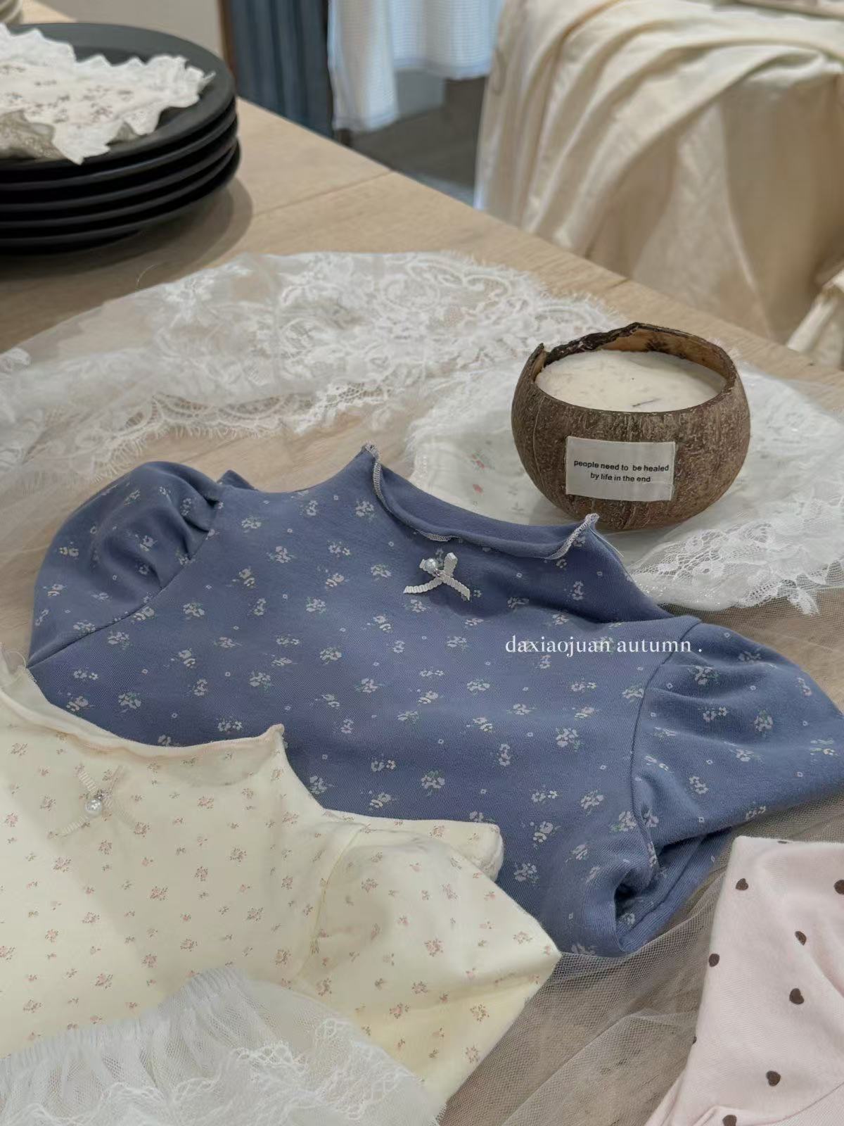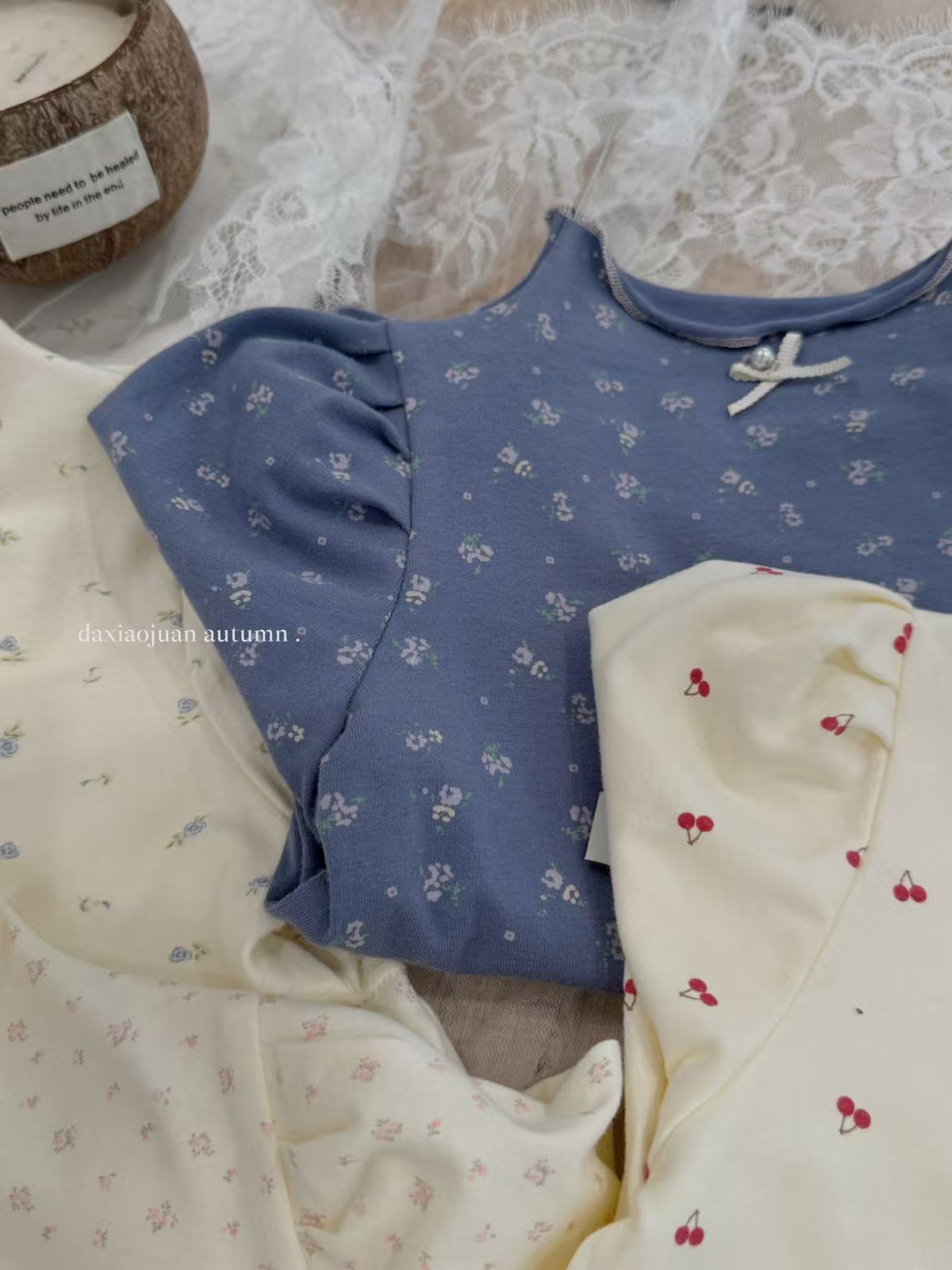 크고 작은 사이즈 아동복 25 가을 여아 하의 셔츠 여아 꽃무늬 달콤한 레이스 칼라 귀달이 달콤한 긴팔 티셔츠
